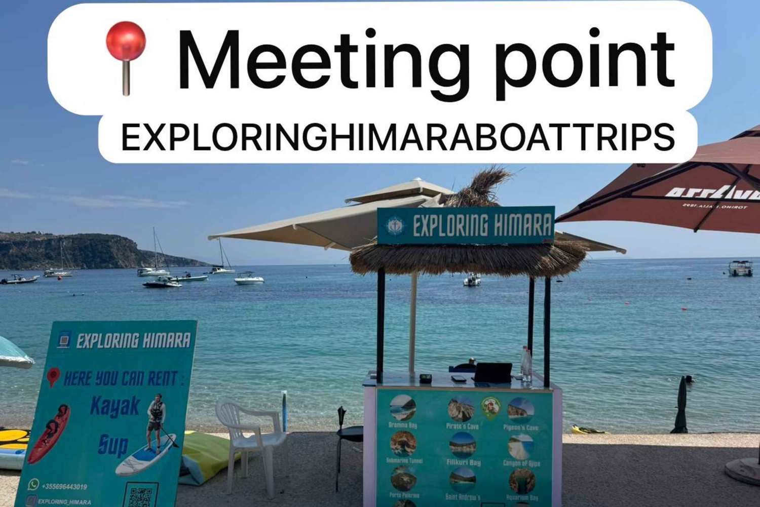 Udforsk de skjulte perler i Det Ioniske Hav på en bådtur fra Himara. Oplev uberørte strande, uudforskede huler og betagende landskaber.