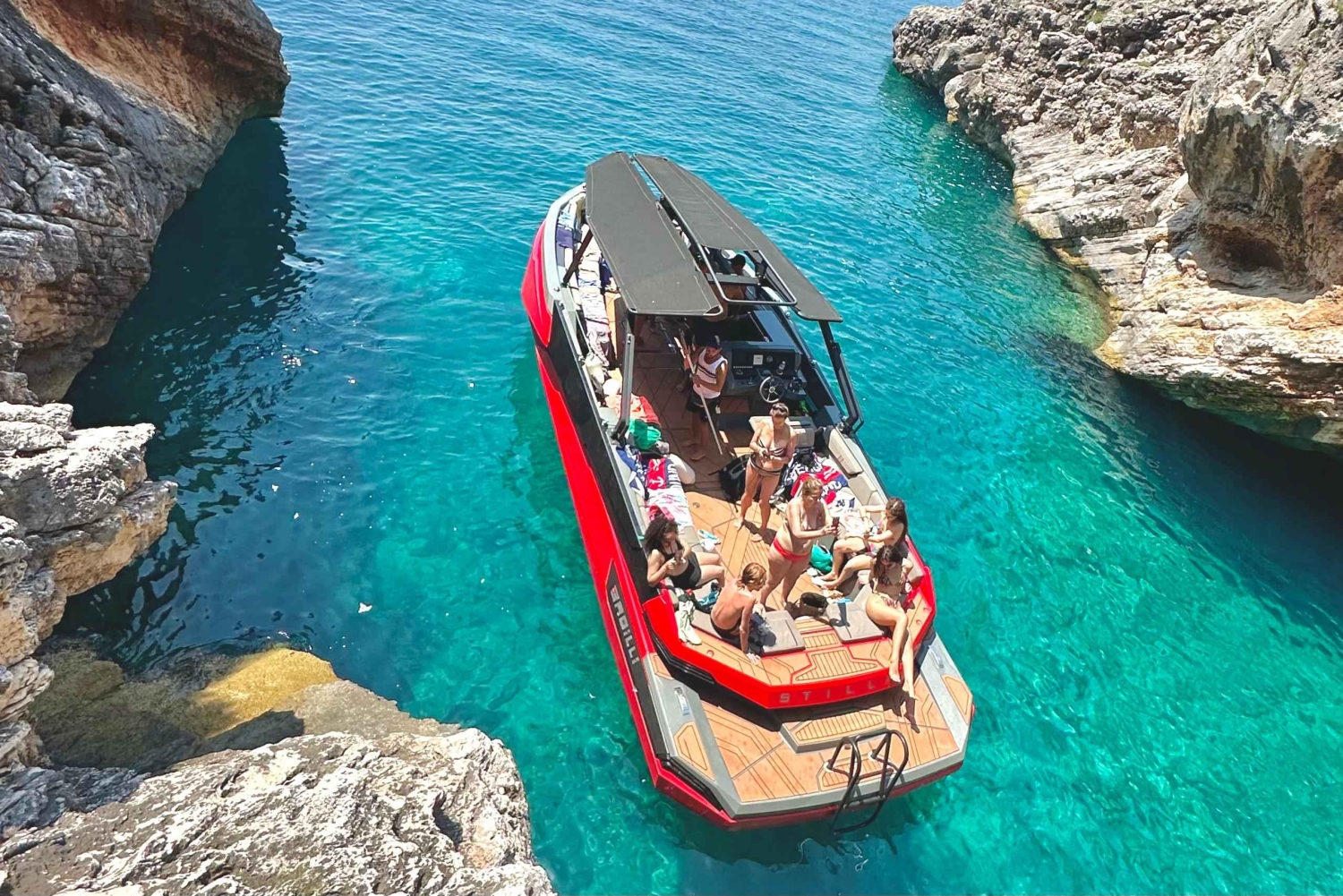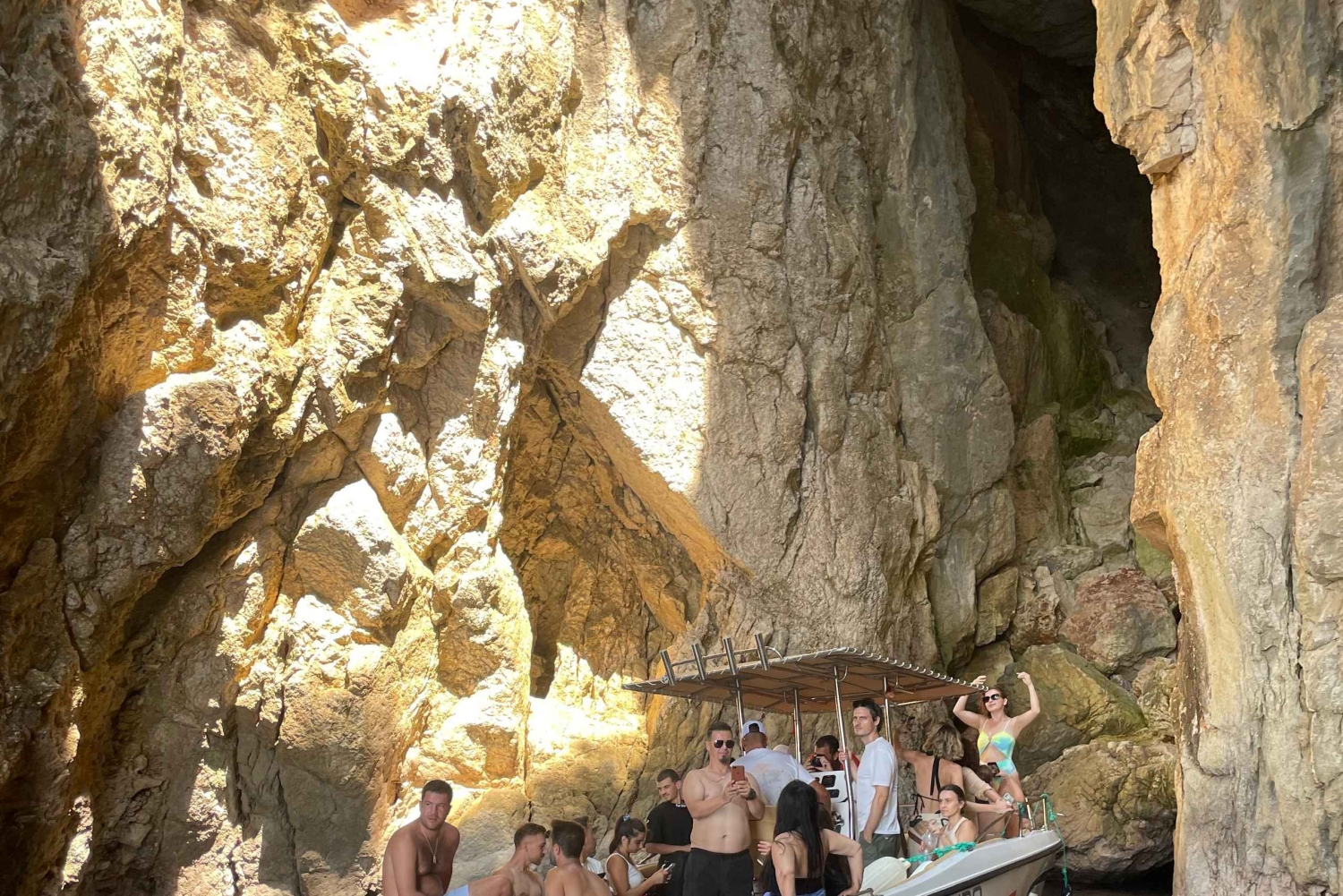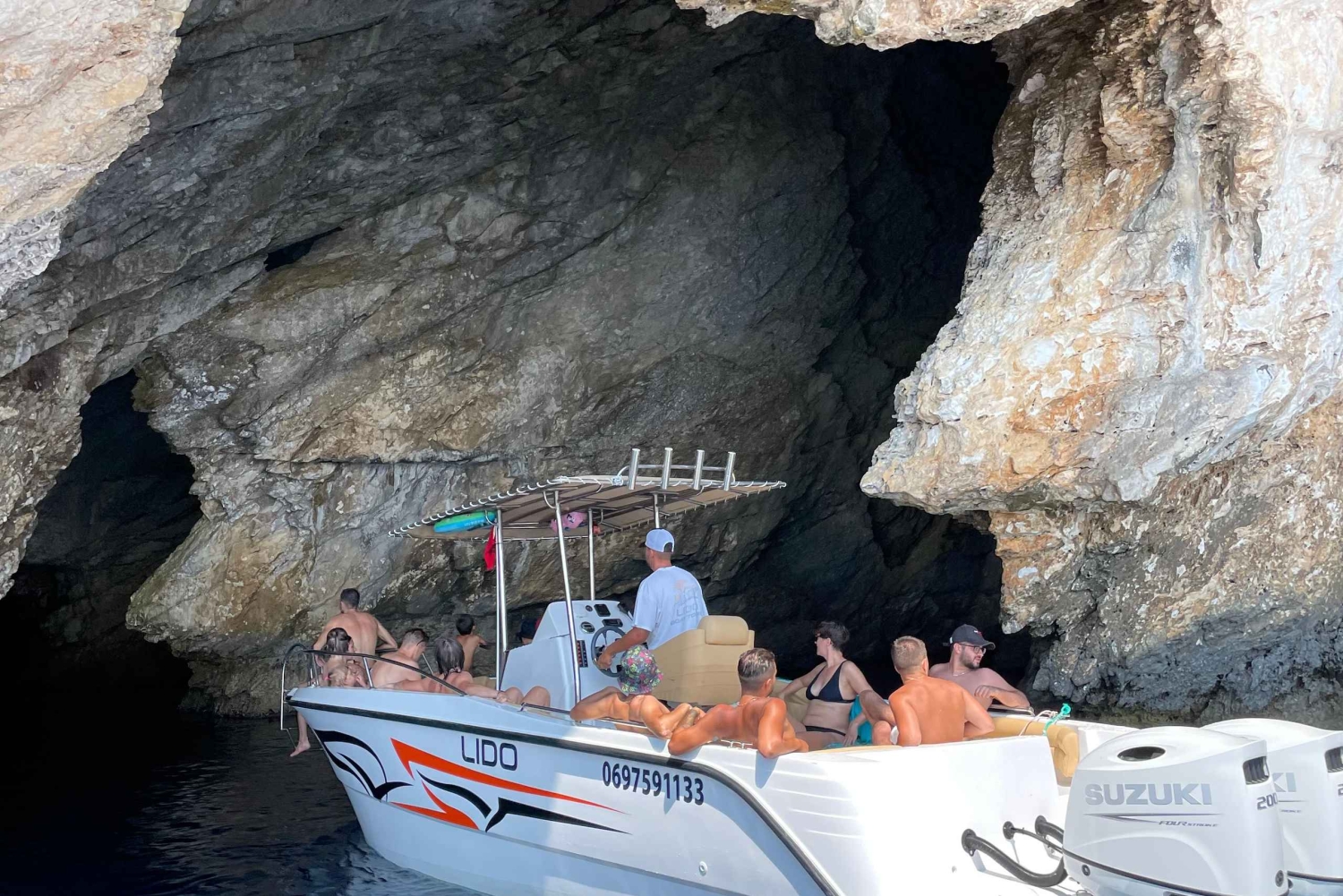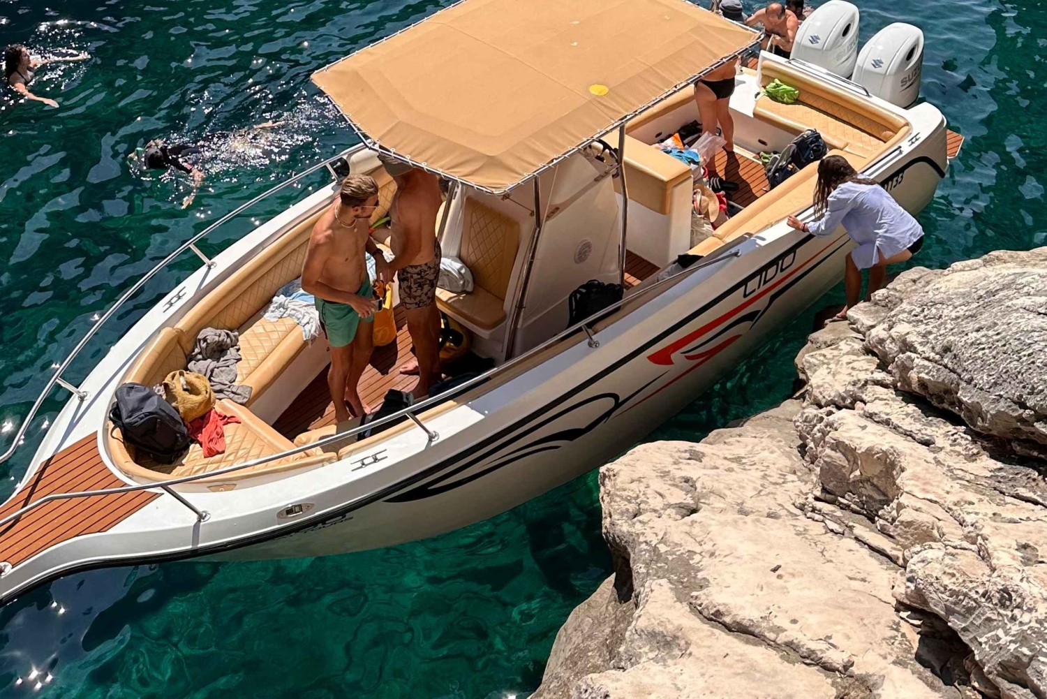 Undervejs stopper båden 4-5 steder, hvor du kan svømme og udforske, så du kan nyde det turkise vand helt tæt på. Tag en forfriskende dukkert ved den hemmelige grotte (10–15 minutter), nyd en længere svømmetur på 30 minutter ved Pigeons Cave, oplev den skjulte charme ved Thunder Cave (10–15 minutter), og slap af ved Saint Andreas Bay (30 minutter).