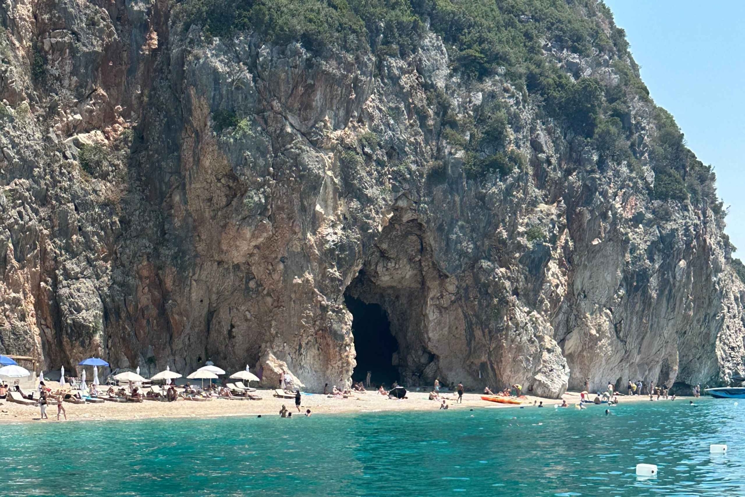 Turens højdepunkt er det 1,5 timer lange stop ved Grama-bugten, hvor du kan svømme, solbade og udforske en af Albaniens mest spektakulære strande. Denne tur kombinerer eventyr, afslapning og uforglemmelige landskaber, hvilket gør det til en oplevelse, du bare skal opleve på rivieraen.
