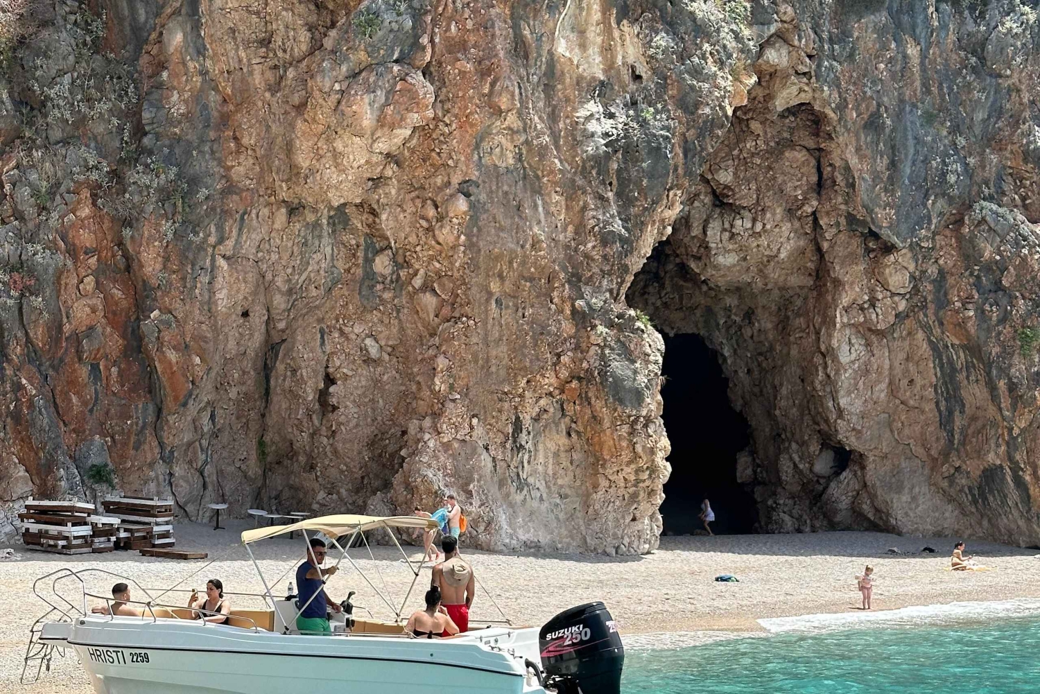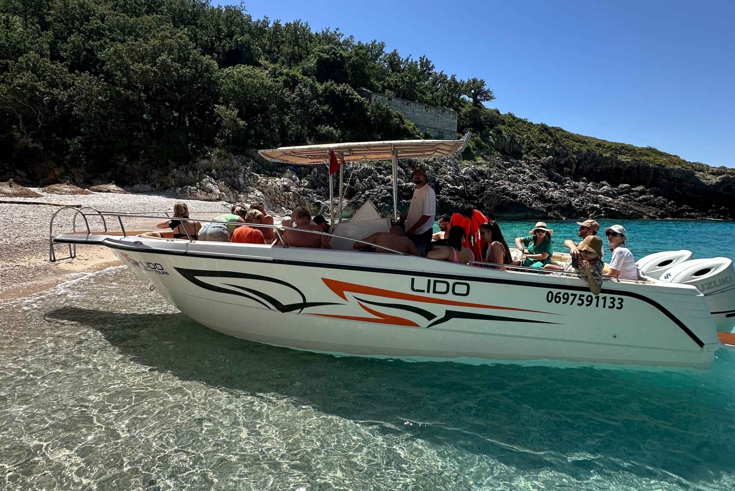Oplev den albanske riviera på en 5,5-timers bådtur. Svøm i krystalklart vand, udforsk skjulte huler, og slap af på den fantastiske strand ved Grama Bay.