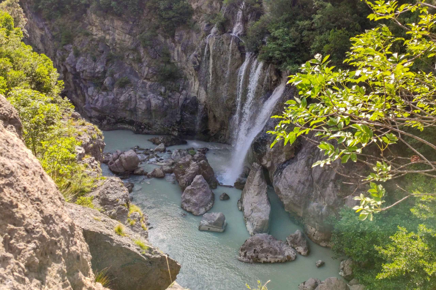 Nach der Höhle setzt du dein Abenteuer durch die malerische Erzeni-Schlucht fort, die in der illyrischen Antike als Ardaxanos-Fluss bekannt war. Hier schlängelt sich der Fluss durch grüne Landschaften und bietet eine ruhige Kulisse für deine Wanderung. Entlang des Weges entdeckst du ruhige Tümpel und Wasserfälle, die zum Nachdenken und Entspannen inmitten der natürlichen Schönheit Albaniens einladen.