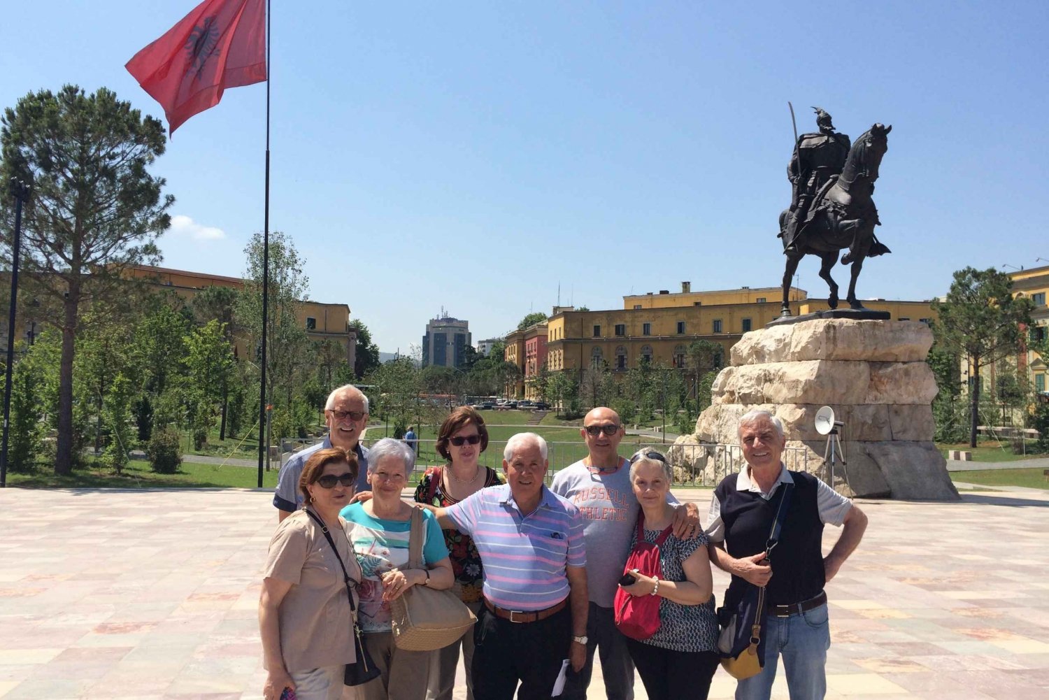 Wir gehen zum Skanderbeg-Platz und lernen die historischen Gebäude wie die Et'hem Bey Moschee und den Uhrenturm kennen, die den Hauptplatz von Tirana umgeben.