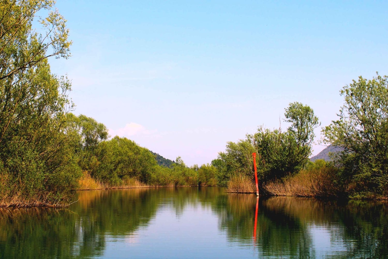 Erlebe die atemberaubende Landschaft des Skadar-Sees bei unserer zweistündigen privaten Sightseeingtour mit Führung. Komm an Bord eines traditionellen Holzbootes, während wir durch schmale Kanäle navigieren und den köstlichen lokalen Wein genießen, während dein Guide dir faszinierende Geschichten aus der Region erzählt. Verlasse das alte Fischerdorf Virpazar durch einen schmalen, von Weiden und Schilf gesäumten Kanal. Bieg links ab, fahr unter der Brücke hindurch und entdecke die Überreste der jahrhundertealten Festung Lesendro. Beobachte Kormorane, Reiher, Möwen, Blässhühner, Eisvögel und viele andere Vögel. Versuch dein Glück und halte Ausschau nach Pelikanen – diese seltenen Vögel sind das offizielle Logo des Nationalparks Skadar-See. Fahre am Fluss Morača vorbei, einem internationalen Vogelschutzgebiet, und fahr zu den drei nahe gelegenen Inseln. Bewundere die versteckten, schmalen Kanäle, die von Schilf und Lotusblumen (je nach Jahreszeit) und ihren großen, schwimmenden, dunkelgrünen Blättern bedeckt sind. Und rate mal – dies ist der perfekte Ort, um Nester und Jungvögel zu beobachten! Wenn du die Wildnis hinter dir lässt, tauche ein in das kristallklare Wasser des Skadar-Sees, bevor du nach Virpazar zurückkehrst.