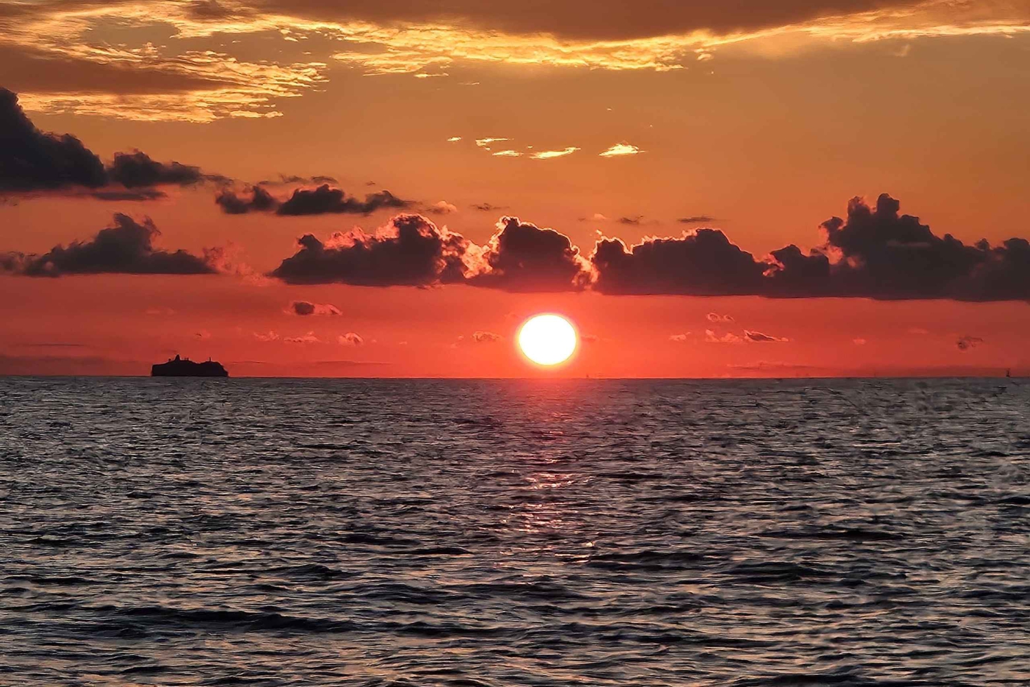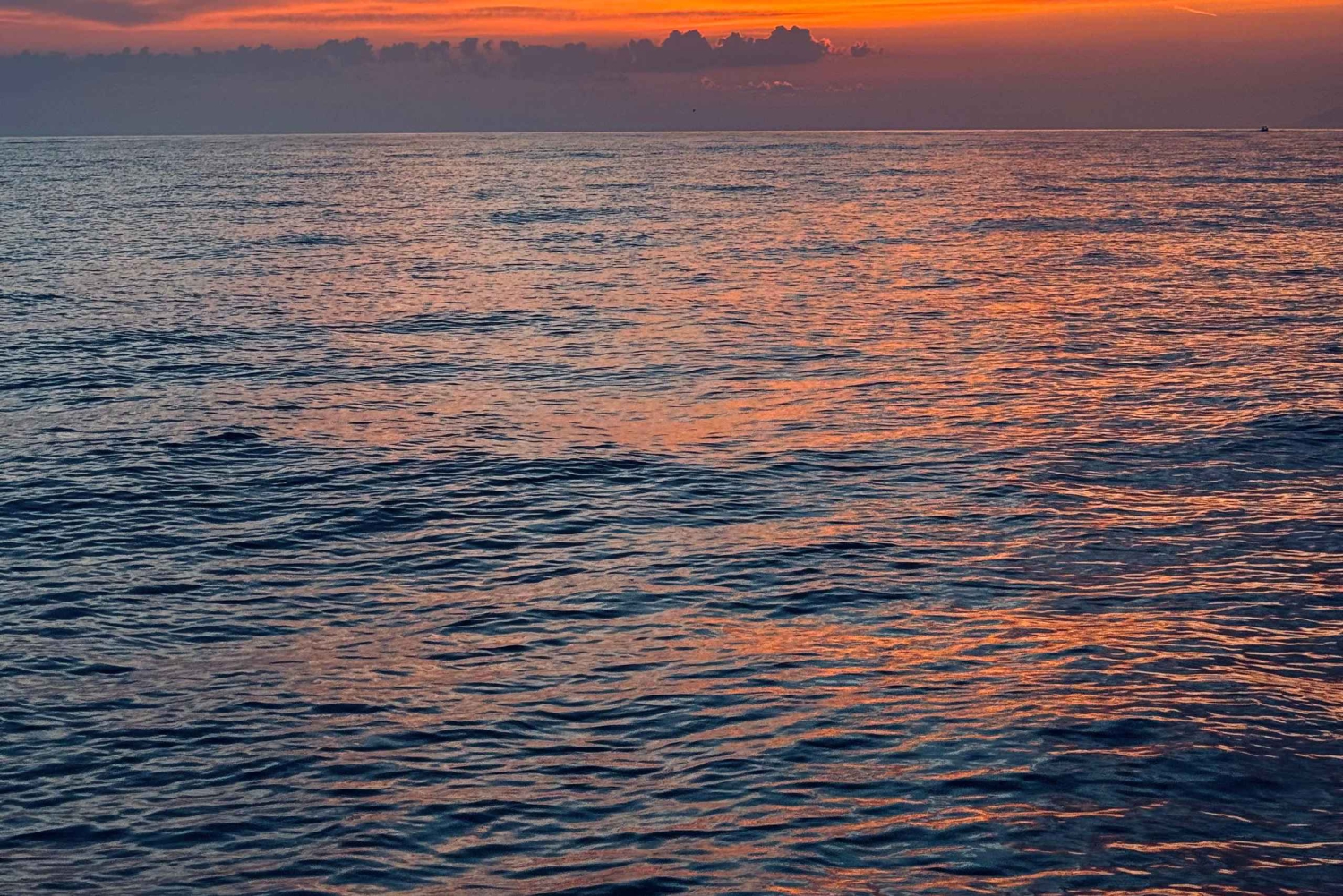 Anschließend halten wir an einem Strand, wo du 30 Minuten lang schwimmen kannst, während wir darauf warten, dass die Sonne weiter sinkt. Wenn die Sonne langsam hinter dem Horizont verschwindet, kannst du ein Glas Wein genießen, während du dich am Strand entspannst oder die Aussicht vom Boot aus genießt. Das goldene Licht des Sonnenuntergangs taucht den Himmel in atemberaubende Farben und schafft eine friedliche, romantische Atmosphäre.