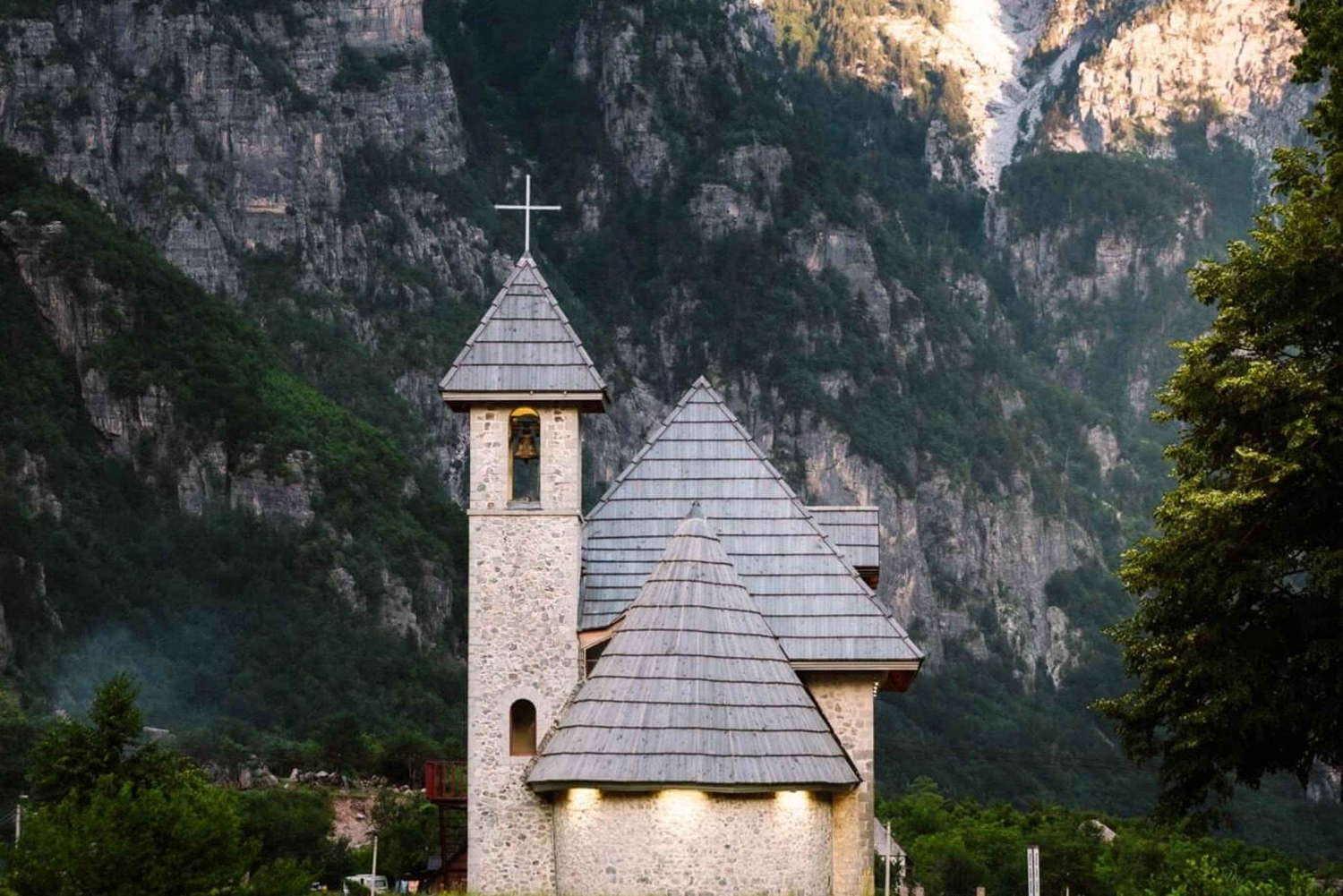 Danach kehrst du nach Nderlysaj zurück, wo du optional ein traditionelles Mittagessen genießen kannst, bevor du nach Theth weiterfährst. In Theth besuchst du den beeindruckenden Grunas-Wasserfall und anschließend die historische Kirche von Theth.