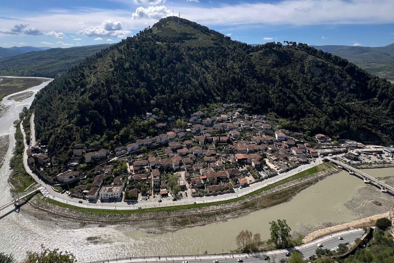 Entdecke die historische Stadt Berat auf einer Tagestour ab Tirana. Erkunde die Altstadt und besuche die kultige Burg, genieße ein traditionelles Mittagessen und nimm optional an einer Bootsfahrt auf dem Belshi-See teil.