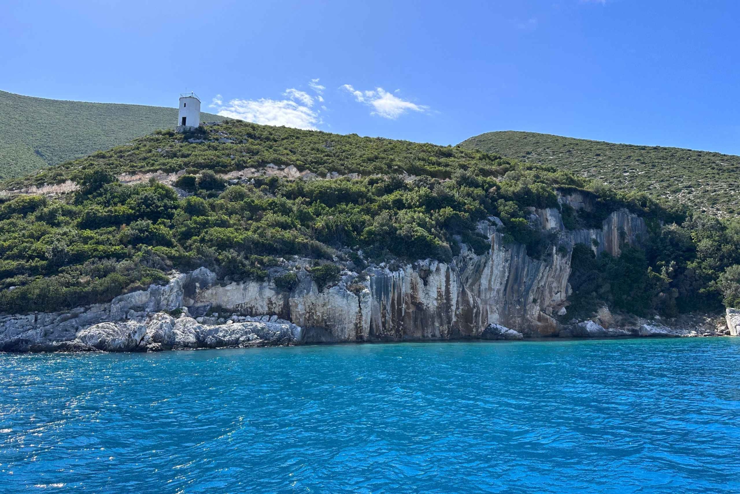 Navega entre acantilados de caliza hasta la cueva de Haxhi Ali y relájate en la playa de San Vasil. Nada y haz esnórquel en aguas cristalinas y explora la joya oculta de la bahía de San Koli.