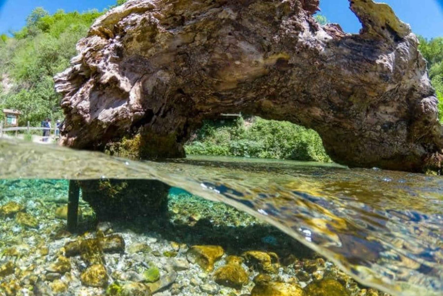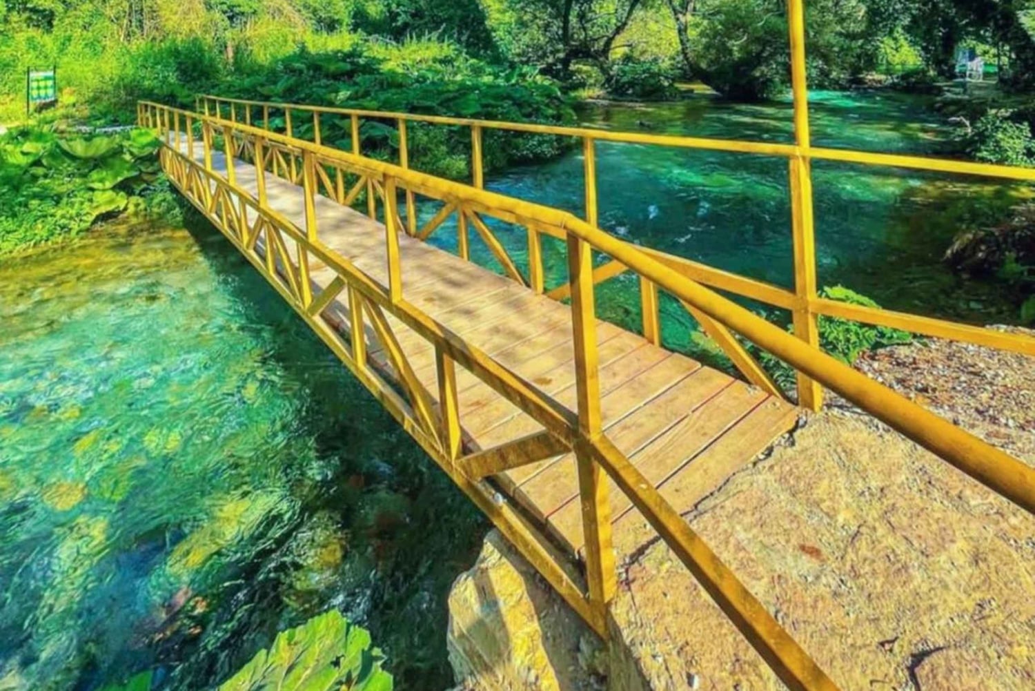 Tu primera parada es el encantador Ojo Azul (Syri i Kalter), una de las maravillas naturales más famosas de Albania. Este mágico manantial es famoso por sus vibrantes aguas turquesas que brotan a más de 50 metros de profundidad, rodeadas de exuberante vegetación. Tómate tu tiempo para maravillarte con los intensos colores y capturar increíbles fotografías en este entorno tranquilo y prístino.