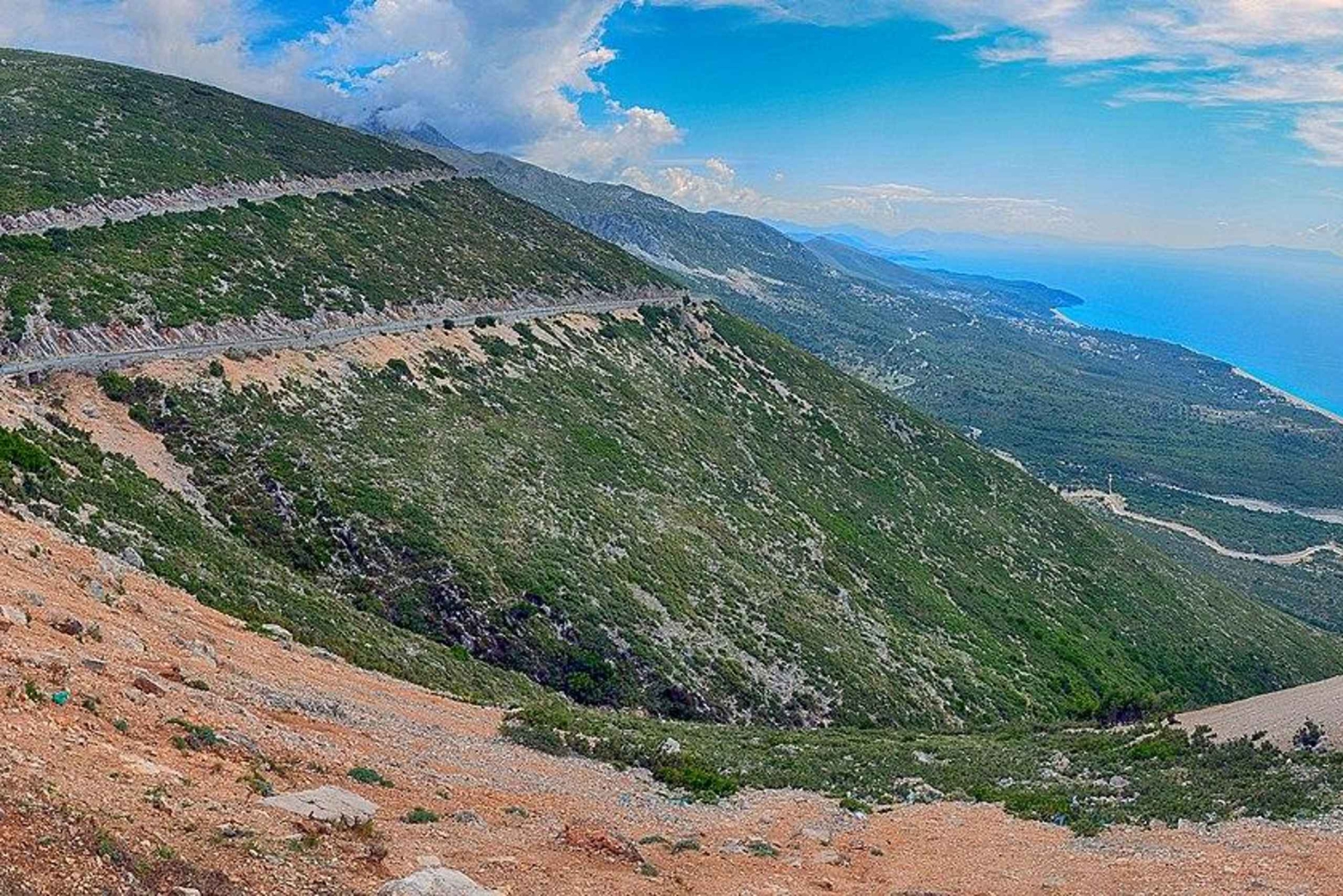 Después, el viaje te llevará hacia la costa jónica a través del Parque Nacional de Llogara. Para en el mirador panorámico de Llogara, un impresionante puerto de montaña que ofrece una de las vistas más espectaculares de la Riviera albanesa. Es el lugar perfecto para dar un paseo, respirar aire fresco y hacer fotos con vistas al mar turquesa.