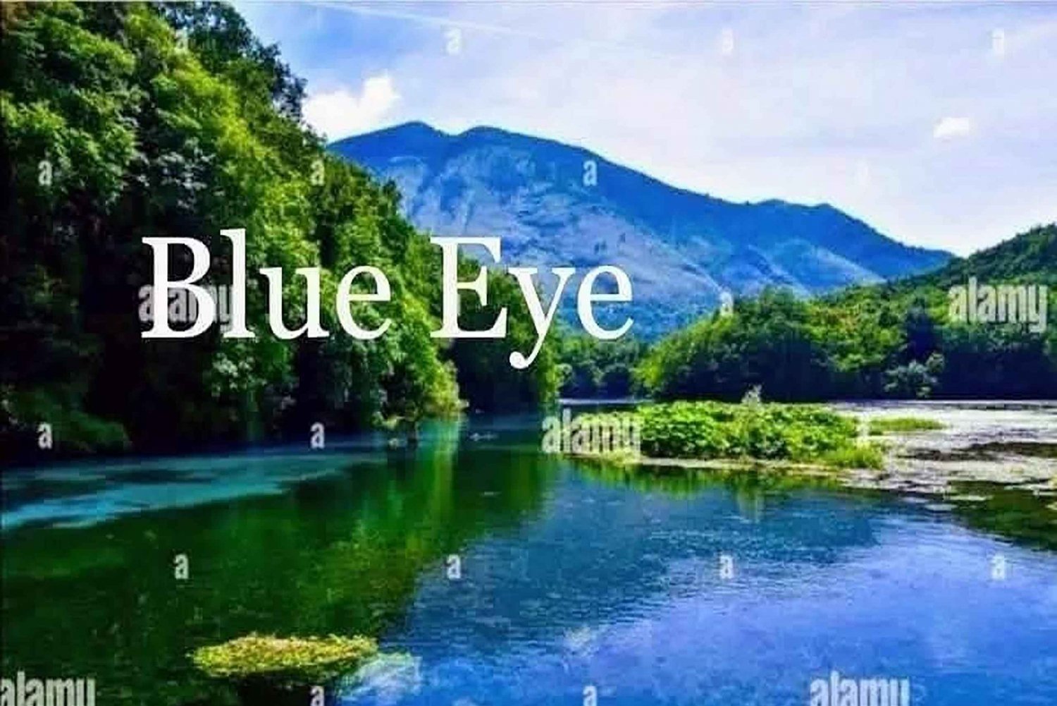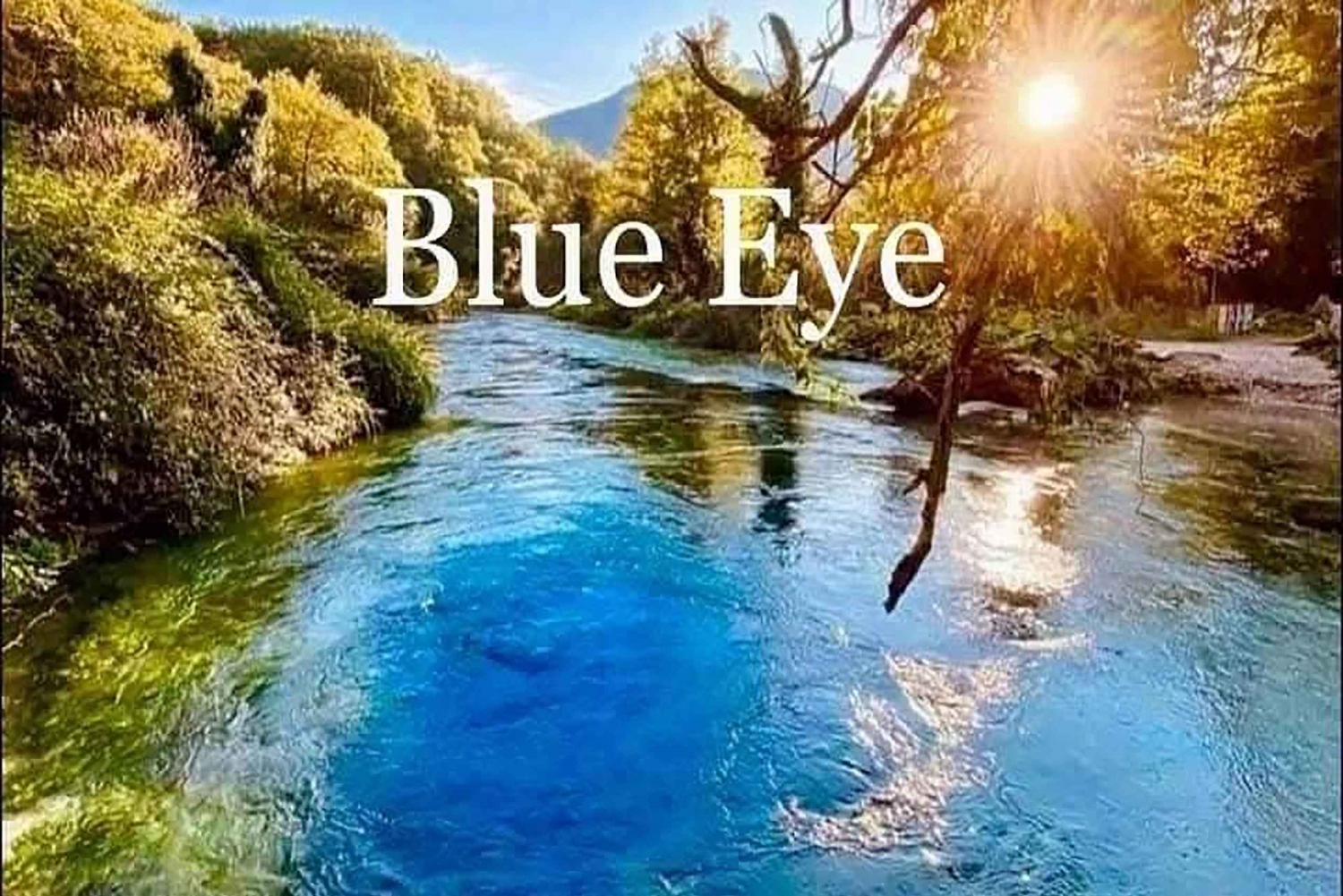 Al continuar el viaje, sumérgete en la maravilla natural del 3️⃣BLUE OJO ️ ( precio de la entrada 50 céntimos ) Este encantador manantial submarino, parecido a un ojo humano, está rodeado de un frondoso bosque y ofrece una tranquila escapada a la naturaleza. El agua fresca y refrescante, con su temperatura constante de 10 grados, es un punto culminante de la excursión.