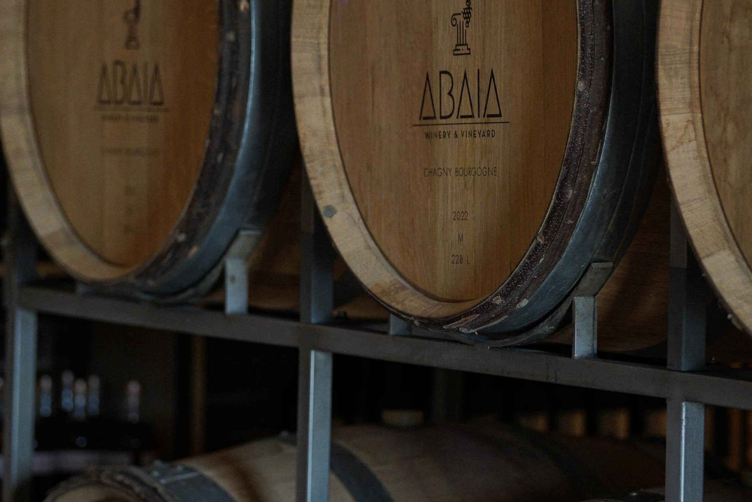 Abaia wine experience will start with the tour of the vineyard that are located side to the winery. After getting a small walk and information about viticulture, the best agricultural practices the tour will follow with a visit of the winery.