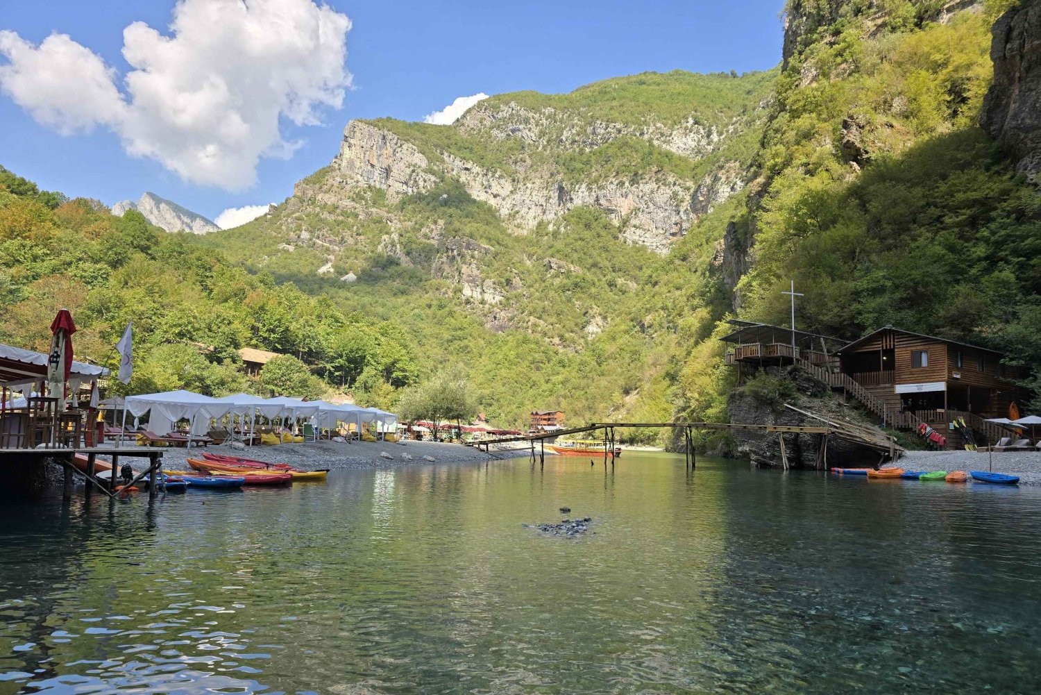 As you enter the Shala River, you’ll feel like you’ve stepped into a natural paradise. Often called “the Albanian Thailand,” the Shala River is famous for its turquoise water, white stone beaches, and peaceful atmosphere. Here you’ll have time to relax, swim in the cool mountain water, and enjoy the untouched beauty of the Albanian Alps.