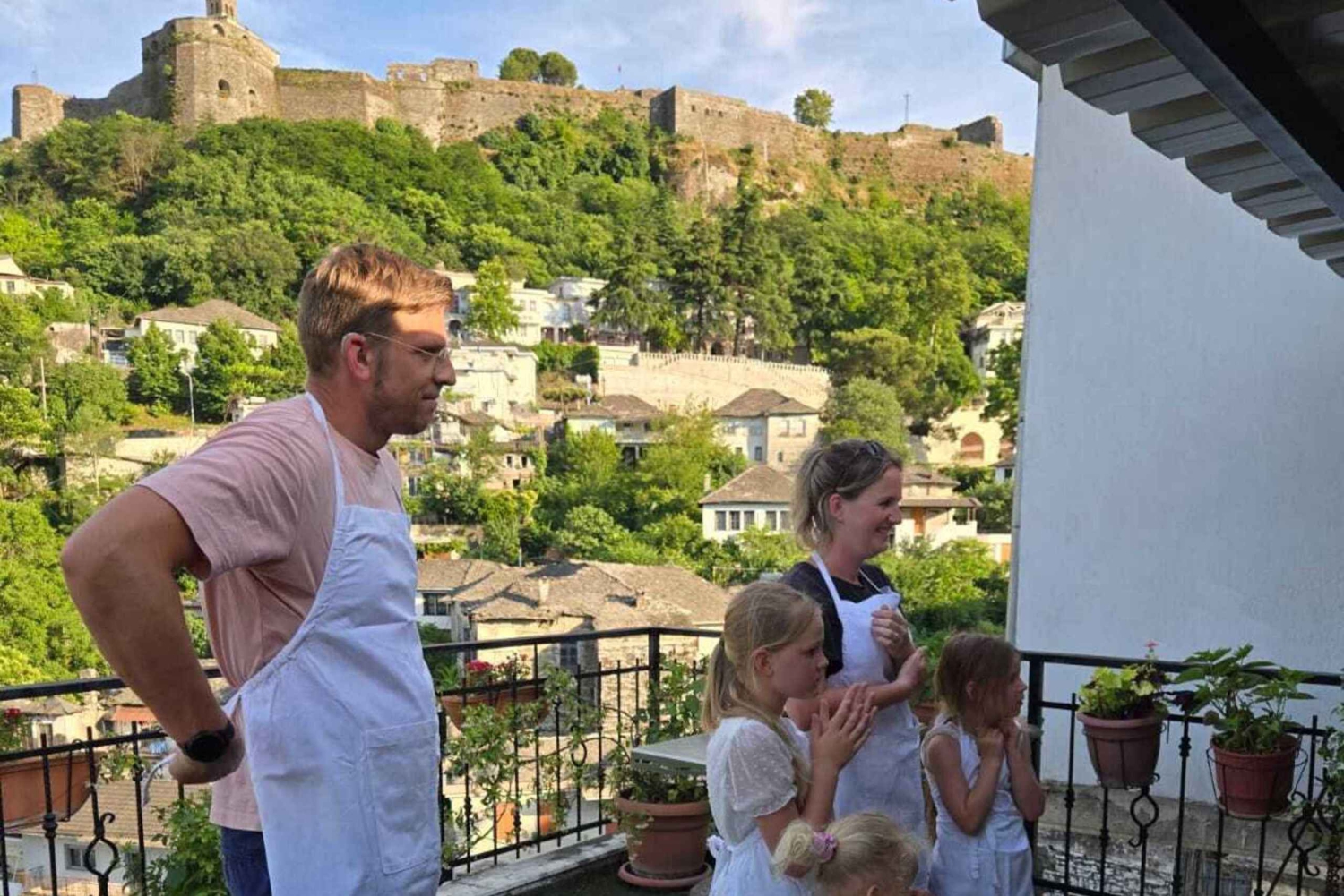 Cook traditional vegetarian dishes with a local family on a peaceful terrace in Gjirokastër, with stunning views and warm hospitality. A cozy, hands-on experience full of flavor and charm.