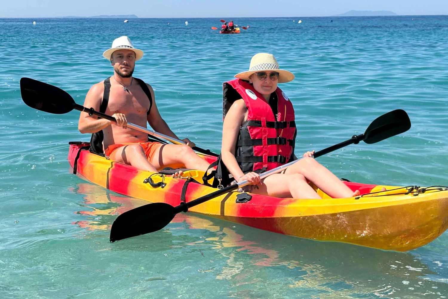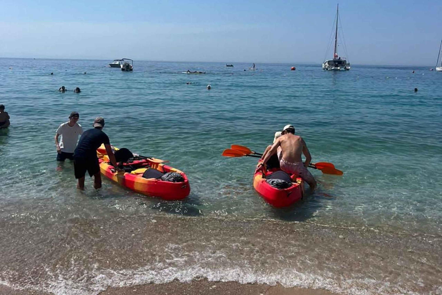 Rent a kayak and explore the Ionian Sea from a different perspective. Paddle through turquoise waters, rugged cliffs, and hidden coves. Enjoy the freedom to pause whenever you want, explore places unreachable by land, snorkel in crystal-clear waters, or simply relax in a quiet bay.