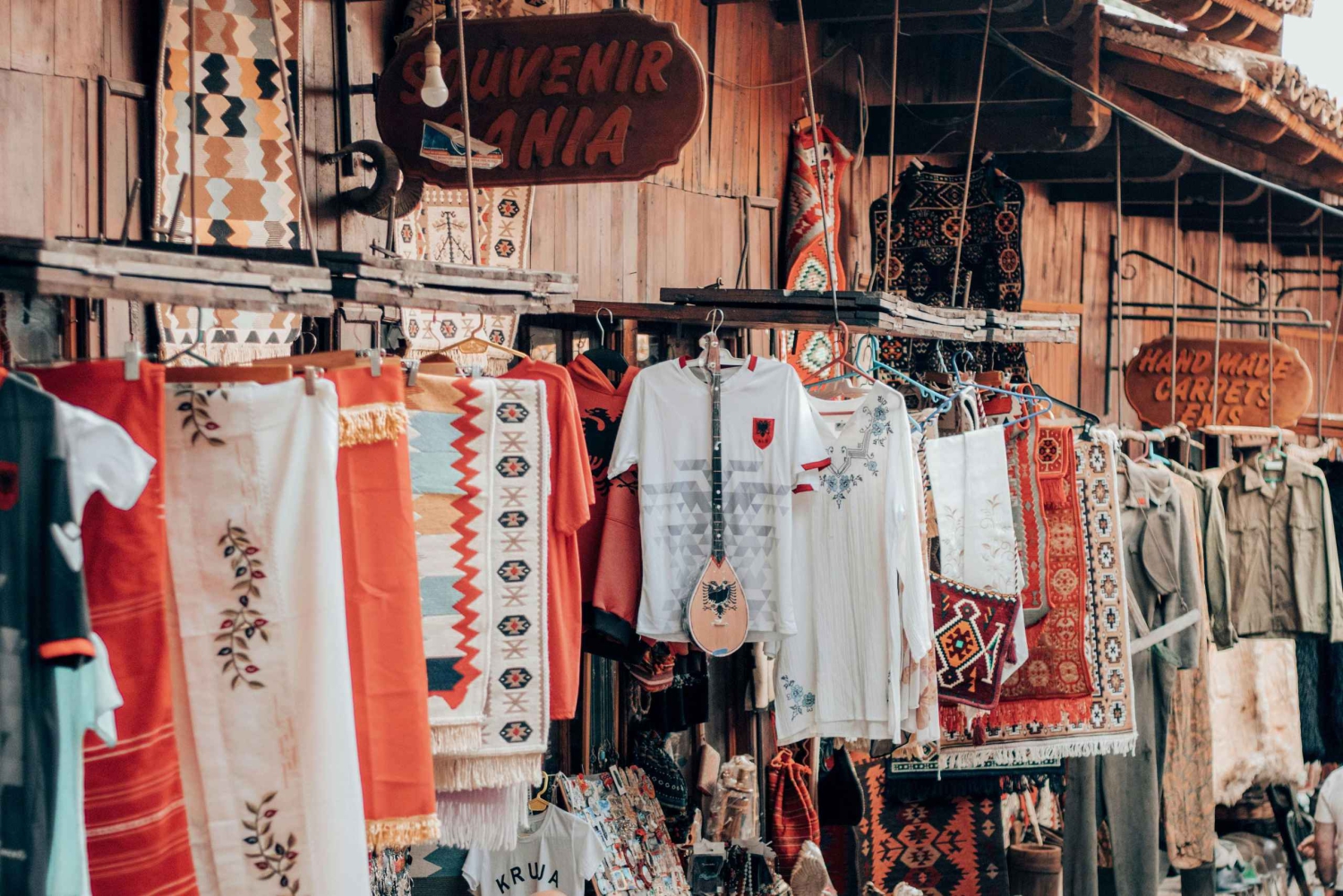 As the sun sets, Kruja transforms into a romantic destination with its narrow cobblestone streets lit by warm lanterns. Stroll through the Old Bazaar, one of the oldest marketplaces in Albania, where local artisans sell traditional carpets, handmade crafts, silver jewelry, and antiques.
