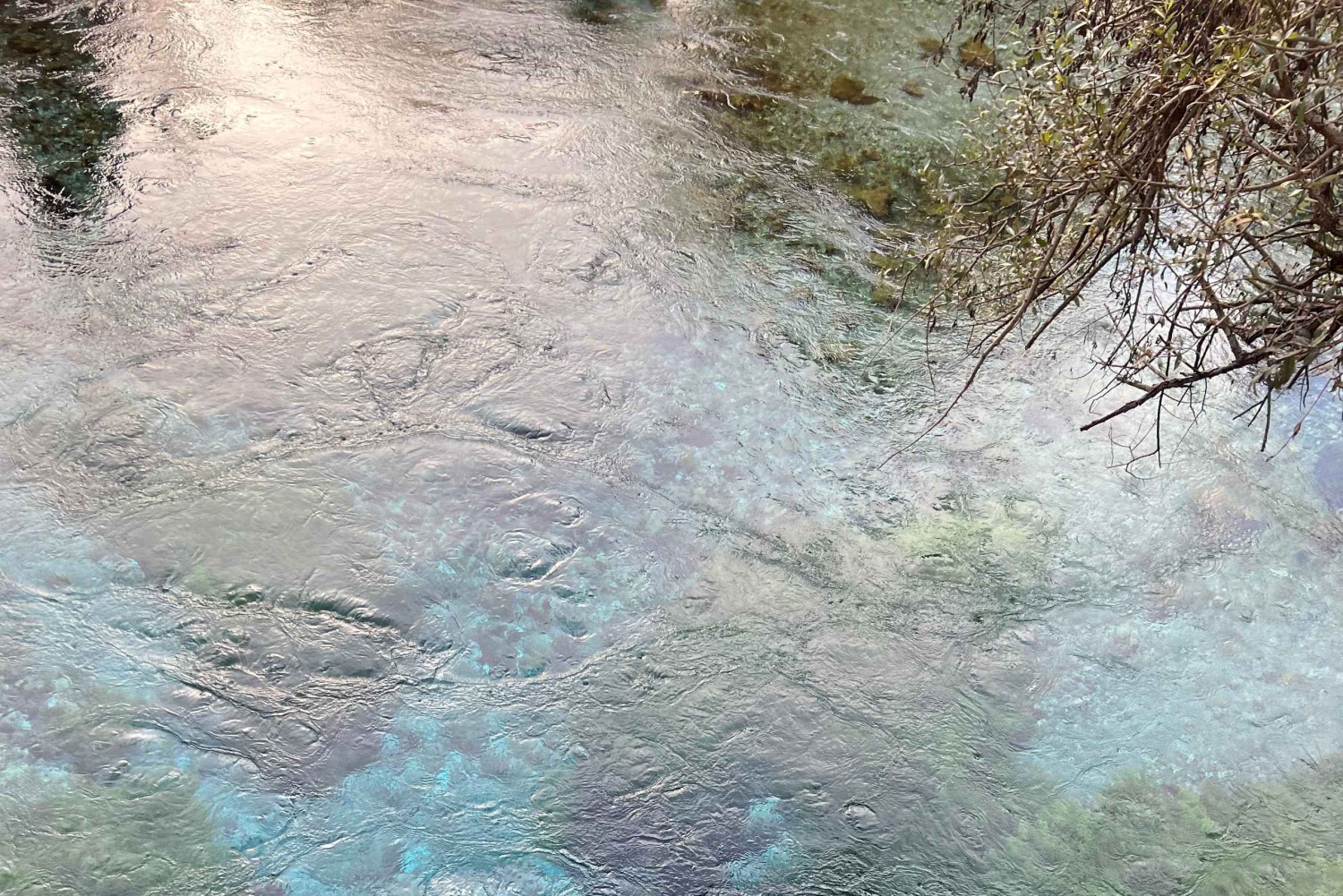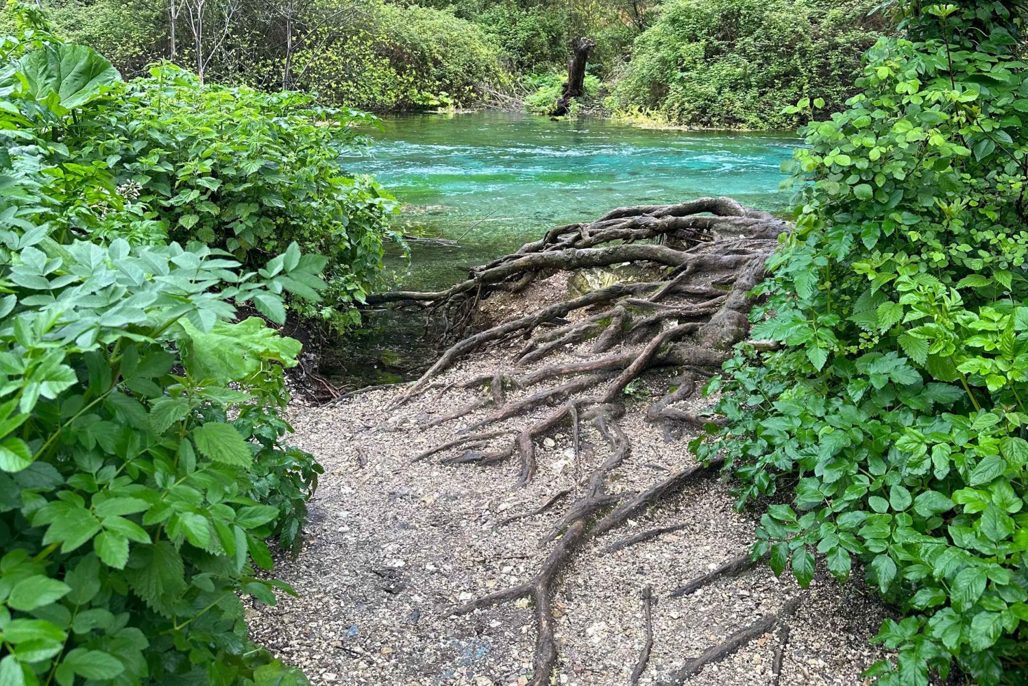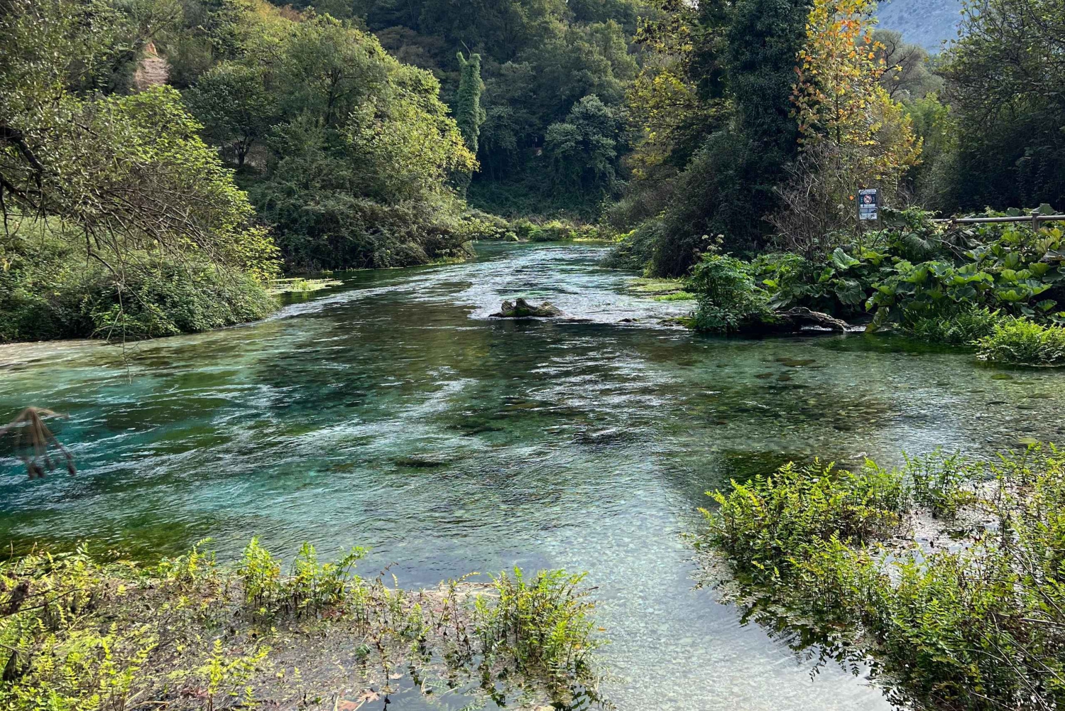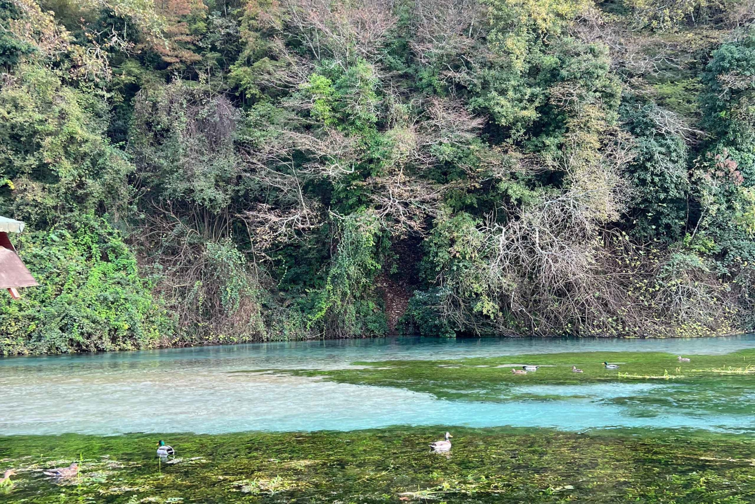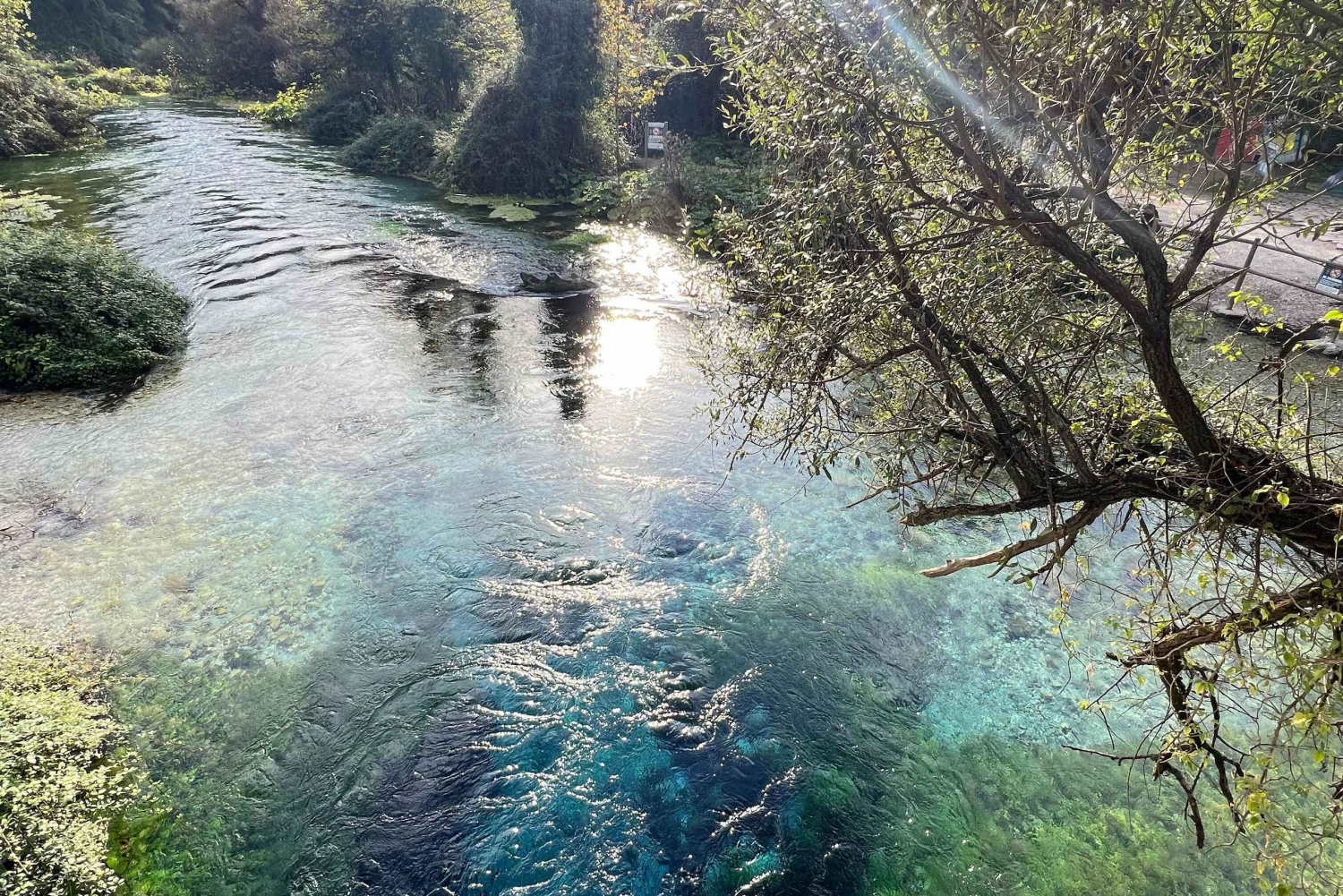 Amazing view of Blue Eye crystal clear water coming from the ground and goes to Bistrica River, the water is around 5 degree celsius.