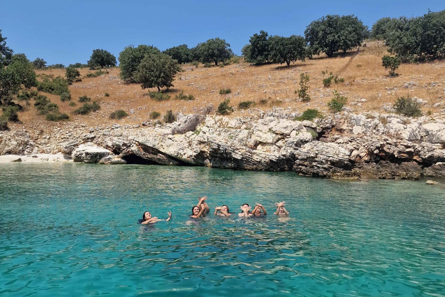 Sail from Limani Port, Sarandë and experience the natural beauty of the Albanian Riviera on this unforgettable 6-hour boat tour. Choose between a group experience or private tour as you explore untouched beaches, secret caves, and crystal-clear waters — with Krorez Beach as the star destination.