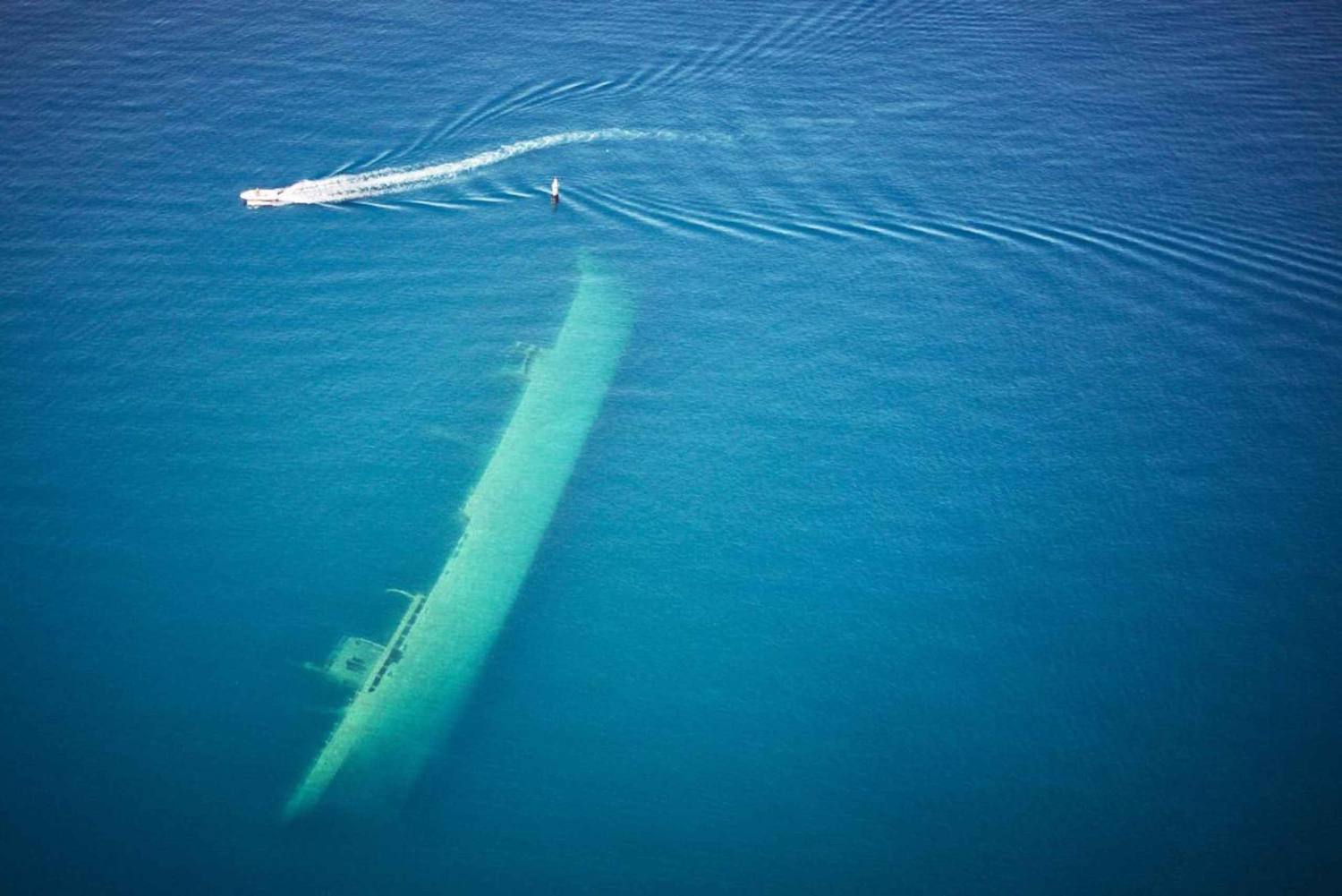 Shipwreck (15min). Resting unspoiled beneath the surface of the sea for over 80 years since WWII. Ideal for snorkeling and History lovers.