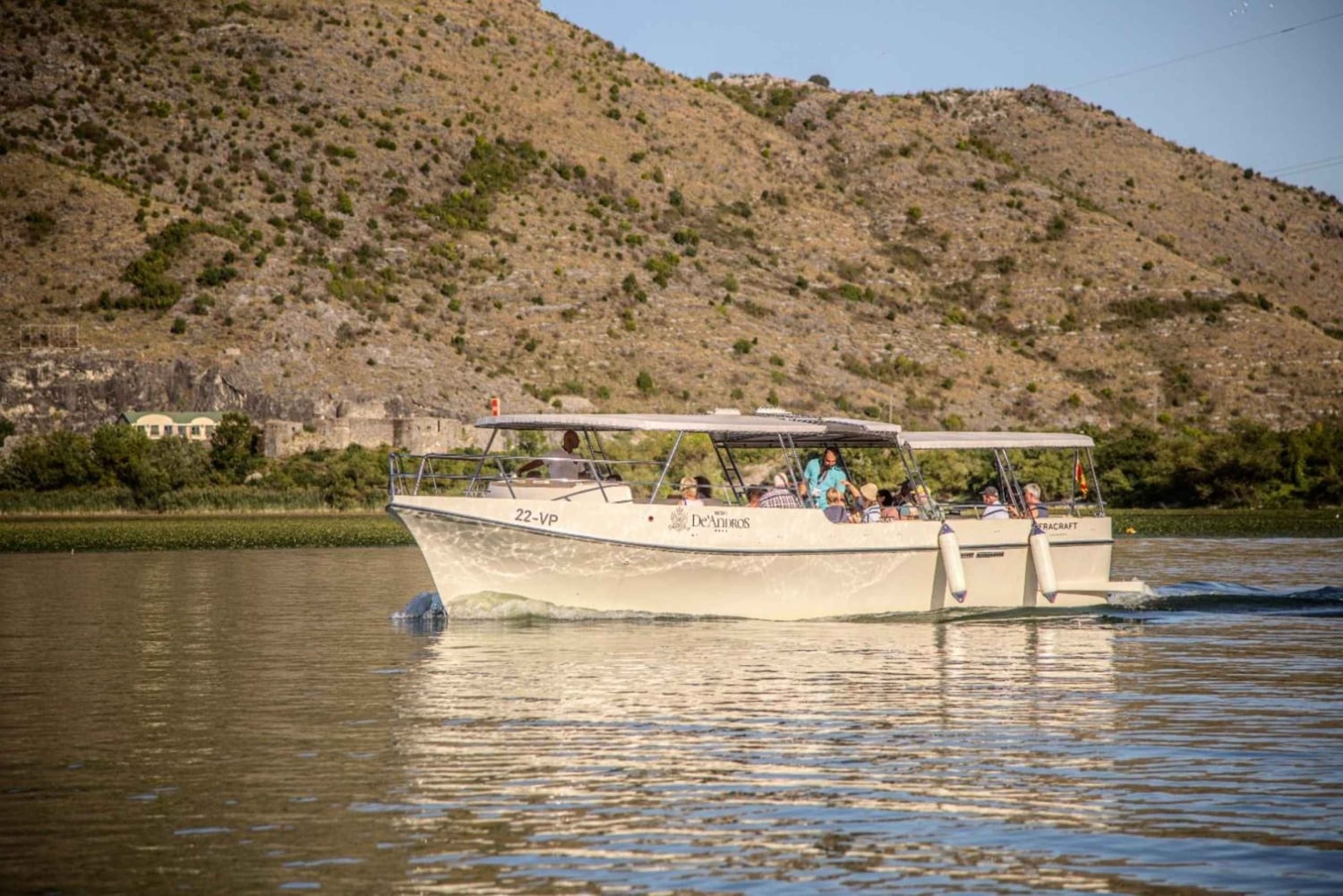 Aloita matkasi rauhallisella risteilyllä kapealla kanavalla, joka avautuu vähitellen Skutarijärven henkeäsalpaavaan laajuuteen. Kun vene liukuu tyynien vesien yli, purjehdi historiallisen Lesendron linnoituksen vieressä, joka on aikoinaan ollut strateginen linnoitus pienellä saarella. Sen ajattomat kiviseinät ja laajat järvinäkymät ovat upea esittely alueen rikkaasta menneisyydestä