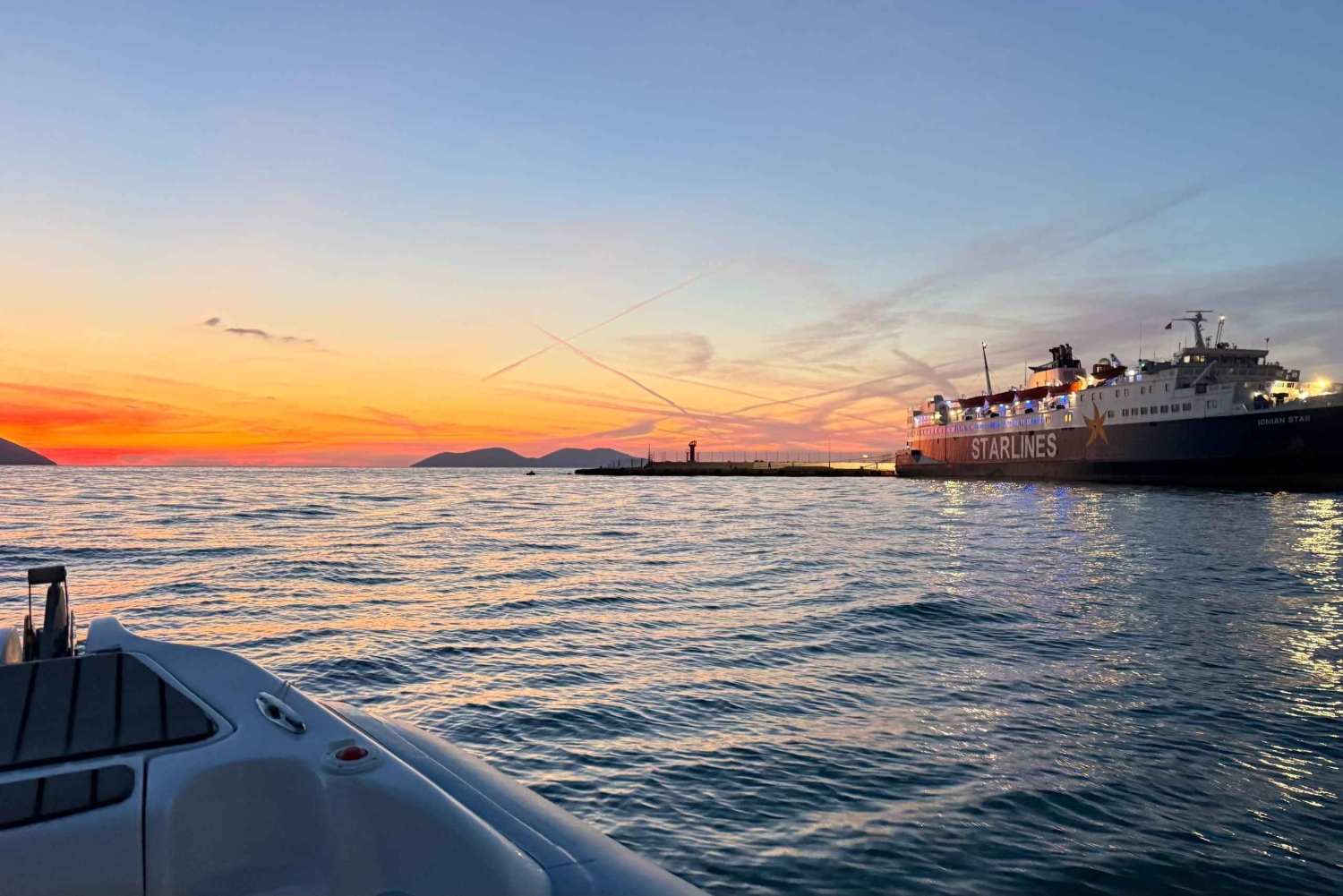 Nauti rentouttavasta venekierroksesta auringonlaskun aikaan Vloran lahdella. Vieraile Marina Bay Luxury Resort & Spassa, nauti paikallisista viineistä ja hedelmistä ja ota upeita auringonlaskukuvia.