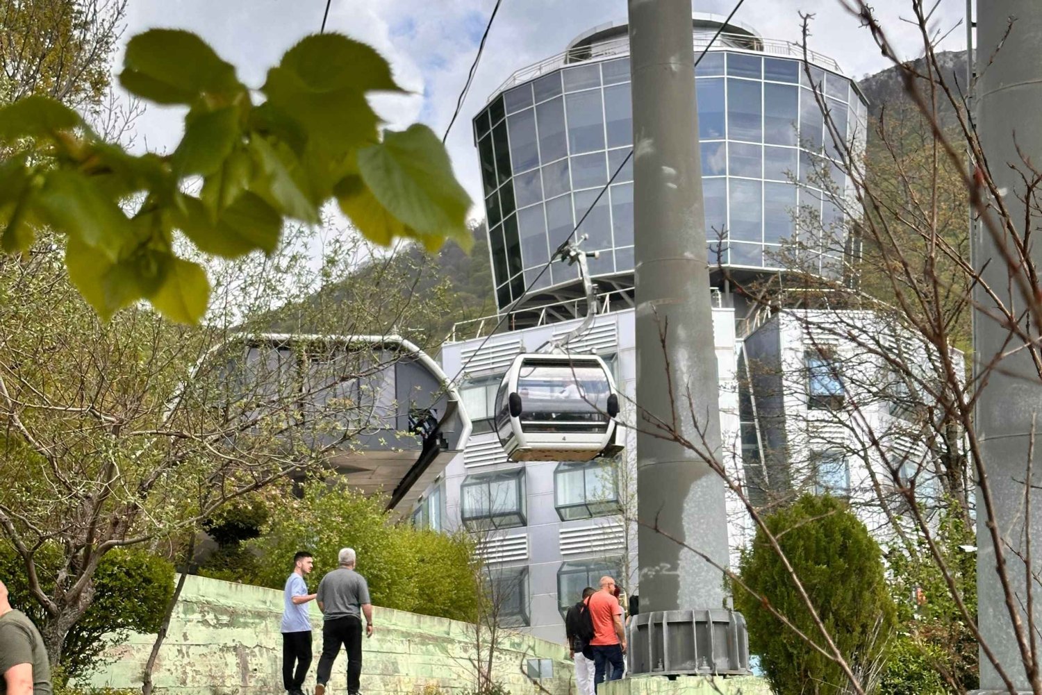 Votre voyage commence par une prise en charge pratique à votre hébergement à Tirana dans une voiture électrique, qui vous conduira à la base du téléphérique Dajti Ekspres. Profitez d'un trajet pittoresque jusqu'au sommet de la montagne Dajti, qui offre des vues panoramiques époustouflantes sur Tirana et le paysage environnant.