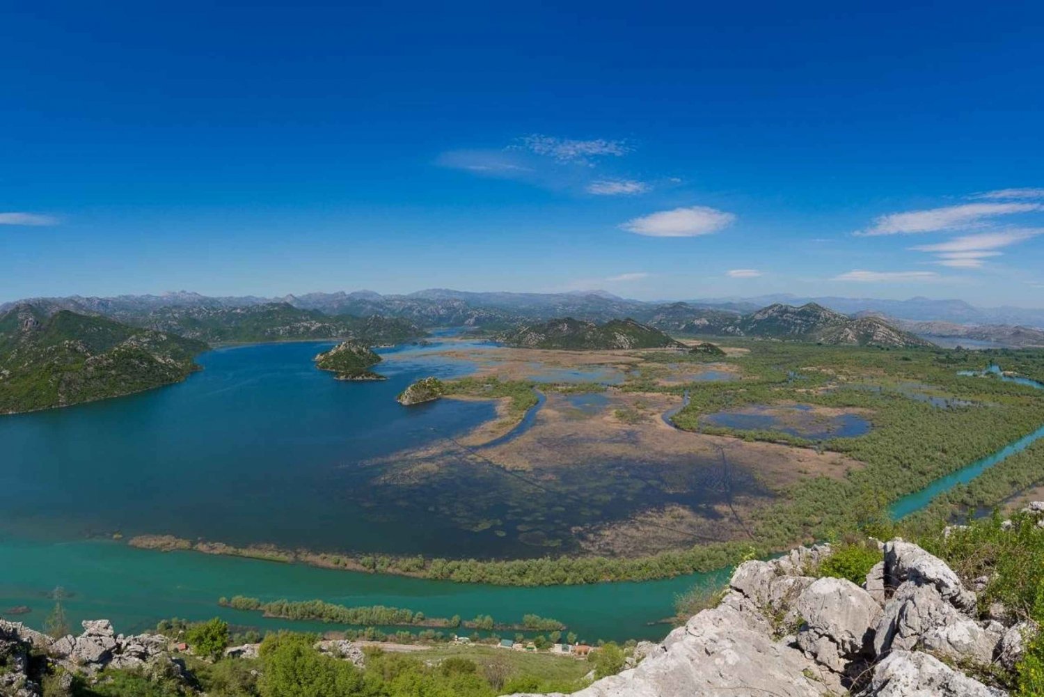 Situé entre l'Albanie et le Monténégro, le lac Skadar est un monument historique et naturel important pour les Monténégrins. Il est classé parc national depuis 1983 et fait partie de la liste mondiale des zones humides d'importance internationale de la Convention de Ramsar. Ne manquez pas l'occasion de découvrir ce parc national de renommée mondiale lors d'une excursion d'une journée au départ de Herceg Novi, avec transport inclus ! Découvrez le plus grand lac de la péninsule balkanique lors d'une croisière de 3 heures sur le lac. Rafraîchissez-vous dans les eaux rafraîchissantes, admirez les nombreuses forteresses et monastères (forteresse de Grmuzur, monastère de Saint-Nicolas, monastère de Kom et forteresse de Lesendro) ou essayez de trouver les 270 espèces d'oiseaux qui peuplent le parc. Ensuite, vous déjeunerez dans un restaurant local où vous pourrez choisir entre un menu à base de poisson ou de viande. Enfin, vous visiterez le petit village de pêcheurs de Virpazar, qui ne compte pas plus de 337 habitants. Entrez dans le Visitor Center Vranjina pour découvrir la culture de la région, avec une galerie, des reliefs de tous les parcs nationaux du Monténégro et une salle ethnique. En outre, vous visiterez un petit village de pêcheurs, Virpazar, qui offre la paix et l'hospitalité, malgré le fait qu'il ne compte pas plus de 337 habitants. Vous aurez l'occasion de visiter le centre d'accueil des visiteurs de Vranjina, avec une galerie, des reliefs de tous les parcs nationaux du Monténégro et de nombreuses plantes et animaux caractéristiques de cette région.