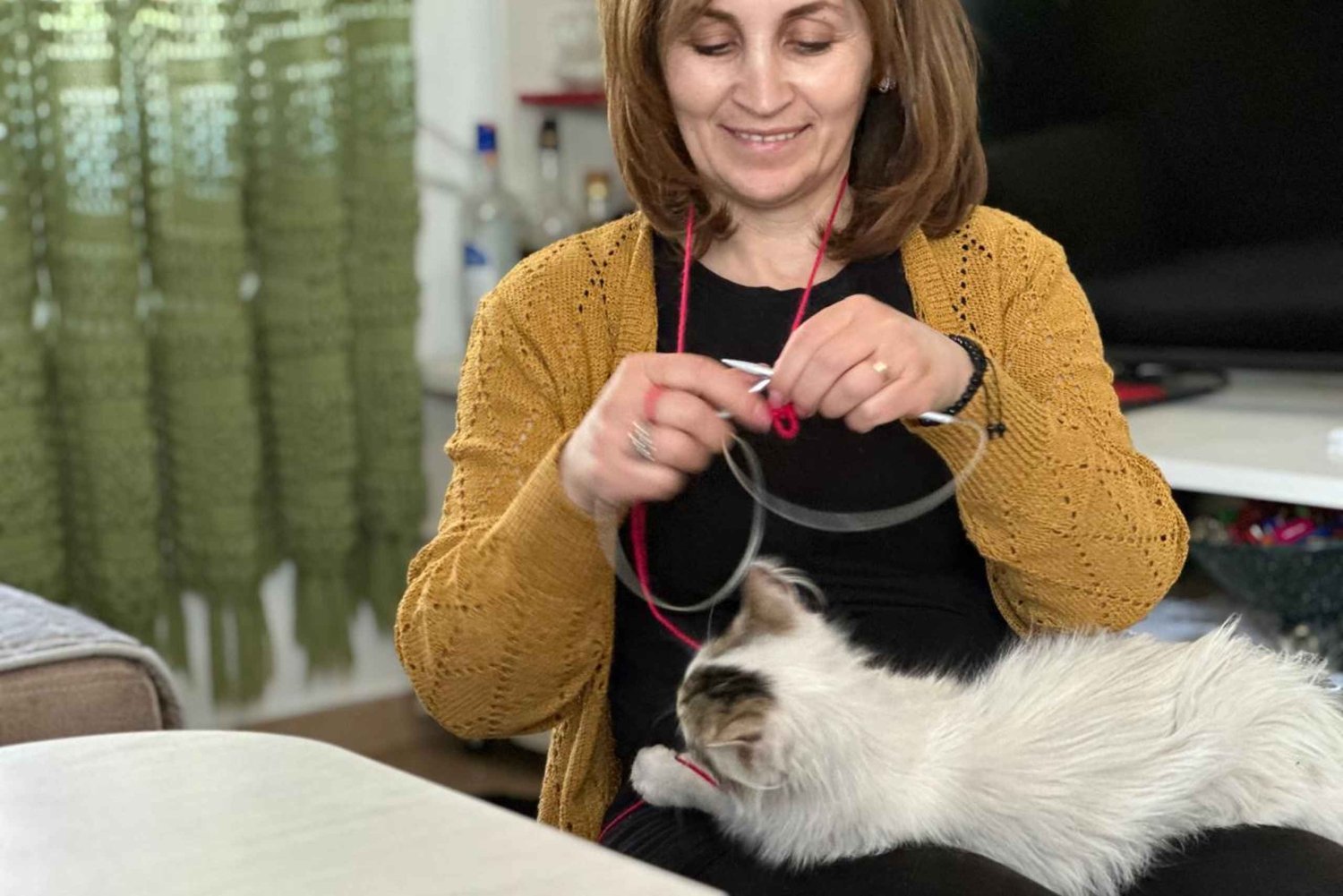 Entrez dans la maison accueillante de Lola, située dans le charmant village de Libohova, pour une expérience de tricot inoubliable. Dès votre entrée, vous êtes accueilli par l'arôme chaleureux du gâteau fraîchement cuit et le parfum réconfortant du thé de montagne qui flotte dans l'air.