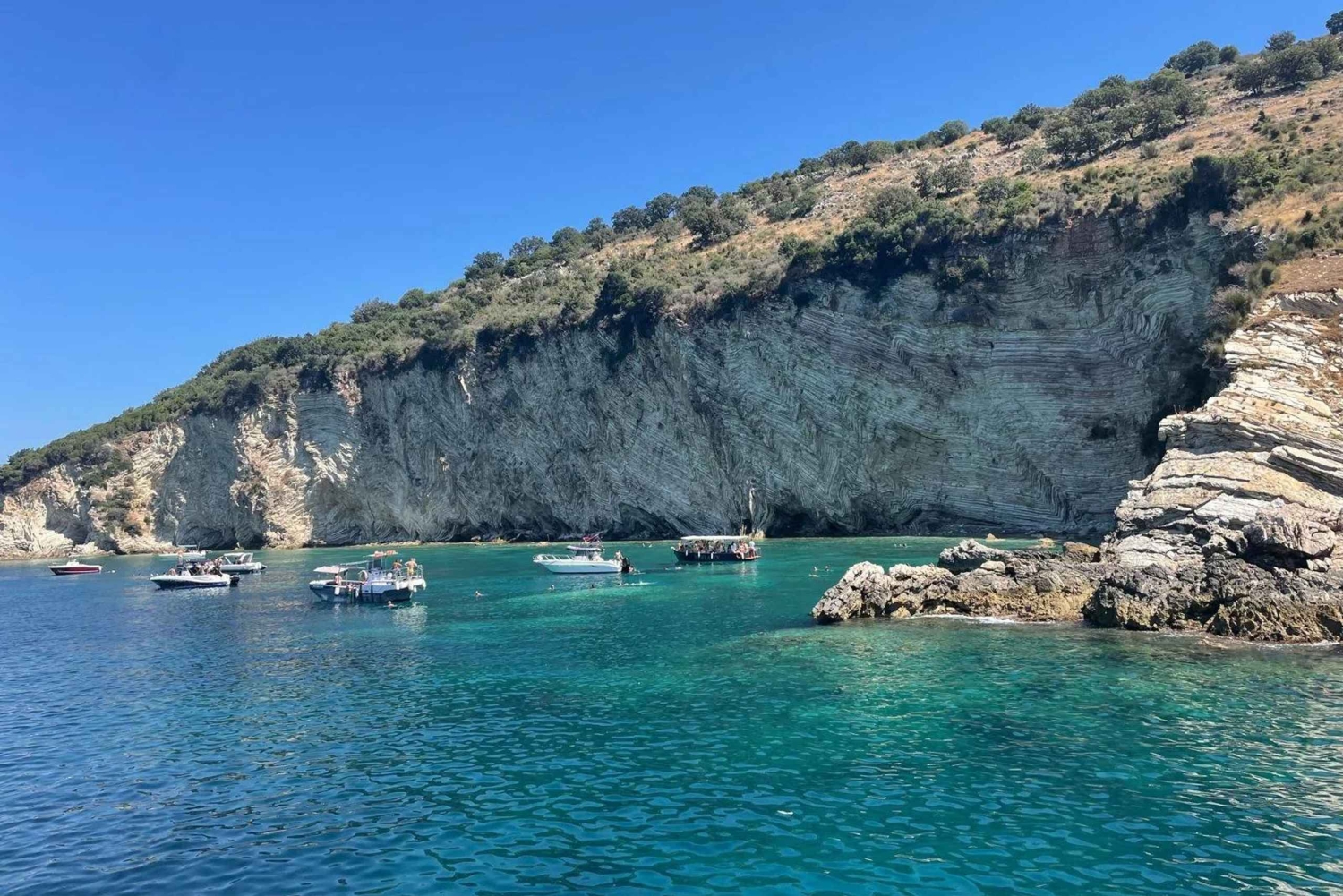 Après avoir visité les bains de poissons, rendez-vous à Gremina e Qefalit, un versant de montagne formé naturellement, ressemblant à un couteau de roche et offrant des vues captivantes. Passez environ 15 minutes à profiter d'une baignade rafraîchissante dans les eaux cristallines, si les conditions météorologiques et maritimes le permettent.