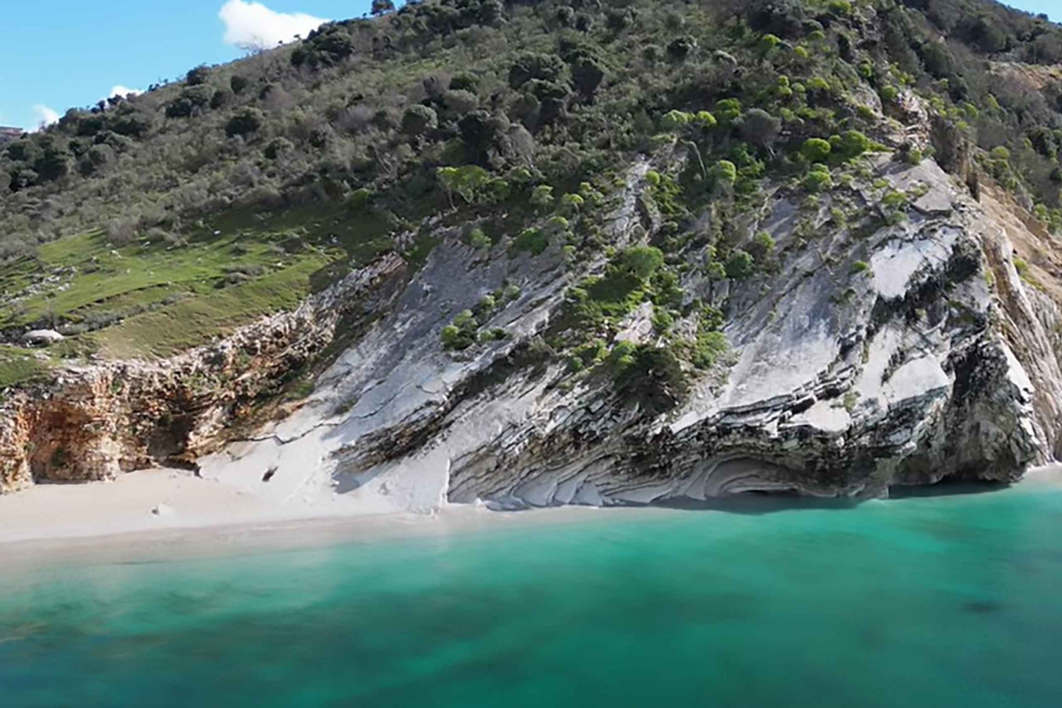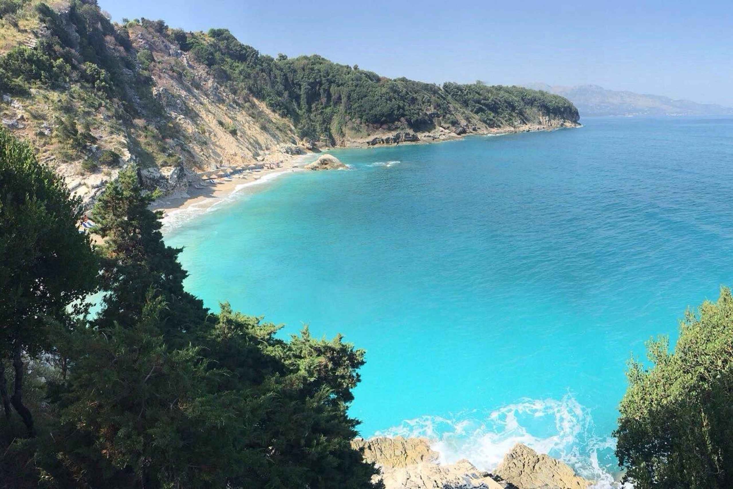 Visites panoramiques des îles de Ksamil Arrêts pour faire de la plongée avec tuba et nager Kep Merli – Vues imprenables sur les falaises côtières Plage de Pulëbardha – Galets blancs et eaux turquoise Plage de Pasqyrat – Plage isolée et pittoresque Monastère de Shen Gjergji – Site religieux historique au riche patrimoine Grotte des pigeons (Shpella e Pulëmbave) – Formations rocheuses rouges et grotte aux eaux bleues