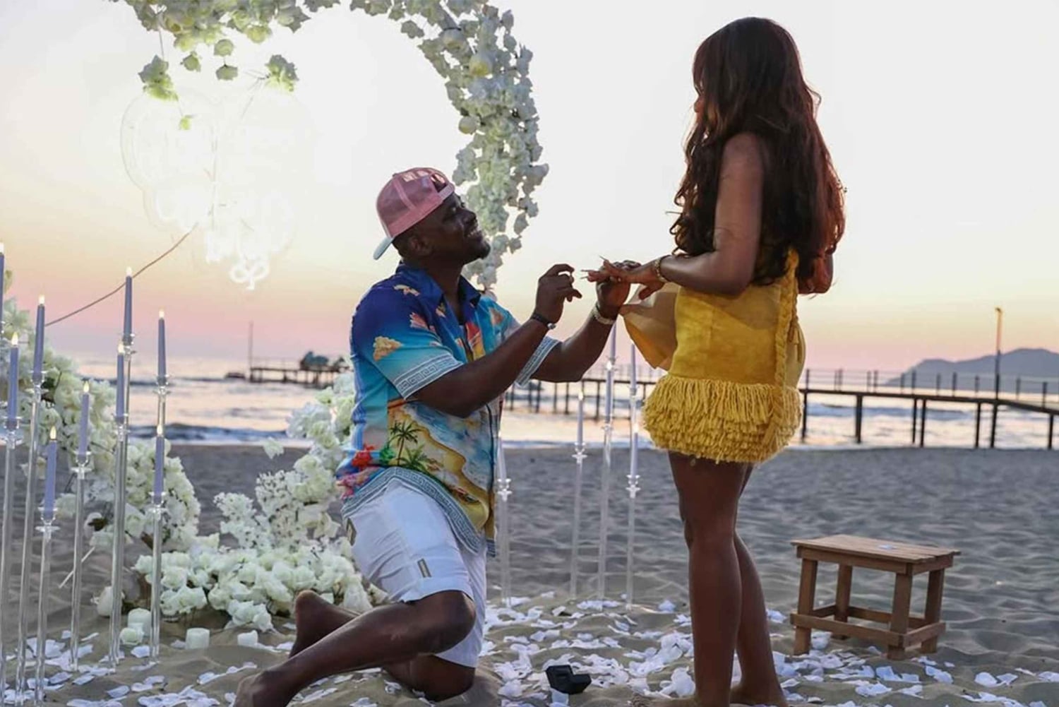 - Celebrate with champagne and 3D illuminated “Marry Me” letters