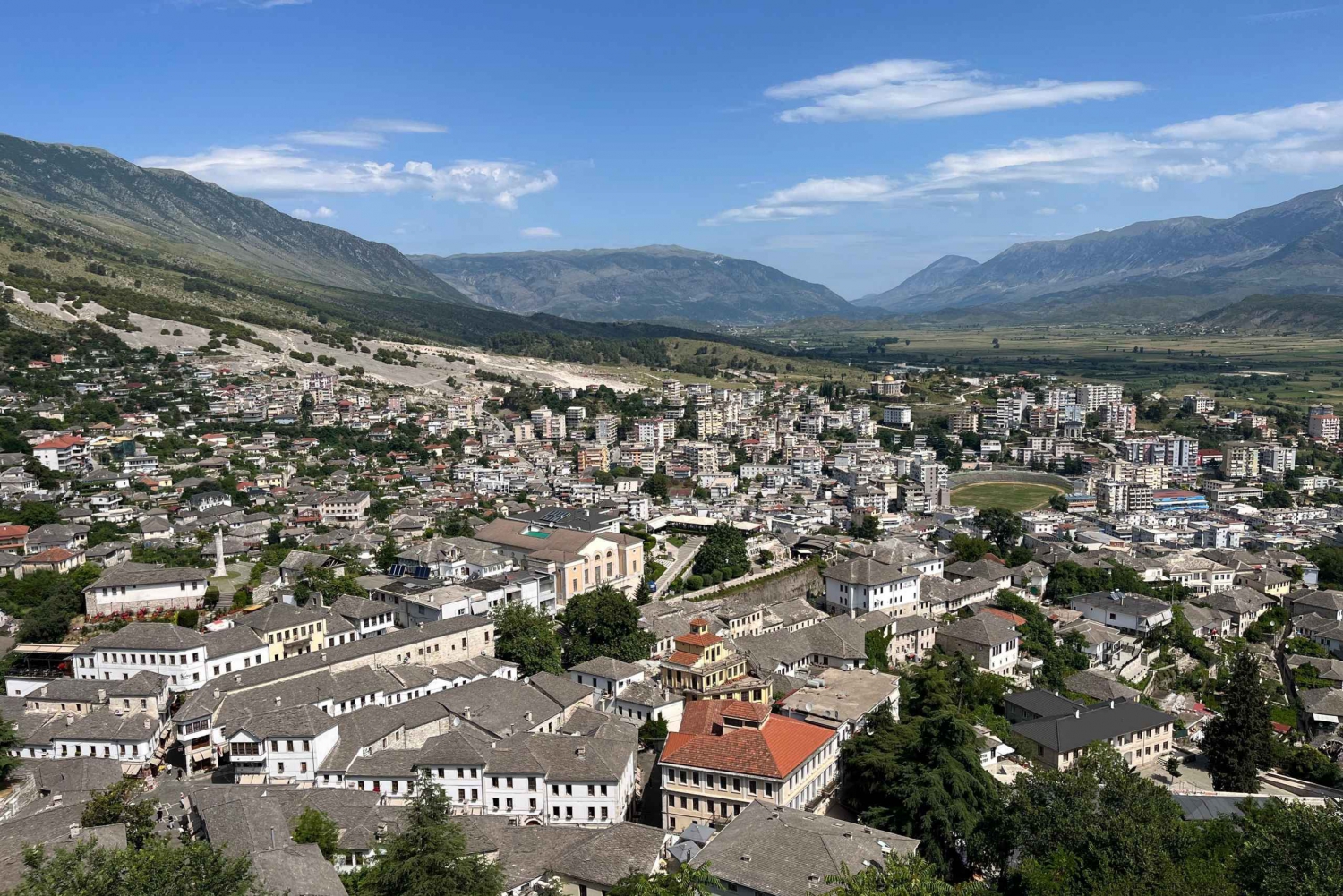 Dopo, esplora la ricca storia del Castello di Gjirokastra, un imponente punto di riferimento che si erge sulla collina sopra la città di Gjirokastra e offre panorami mozzafiato. Concludi la tua avventura nell'affascinante Old Bazaar, dove potrai immergerti nella cultura locale e assaporare sapori autentici. Acquista souvenir artigianali in legno, pietra o tessuto mentre ammiri la magia del Bazar.