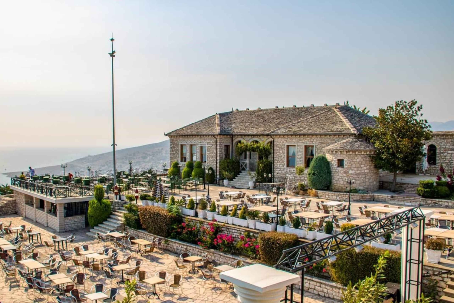 Inizia il tuo tour con un viaggio al maestoso Castello di Lekuresi, arroccato strategicamente su una collina che domina la vivace città di Saranda. Goditi la vista panoramica che spazia dalla città fino alle idilliache isole di Ksamil.