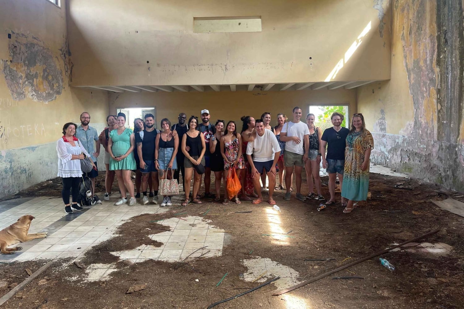 - De activiteit omvat wandelen over onverharde wegen; schoenen met gesloten tenen, sneakers of sandalen voor buiten worden aanbevolen.