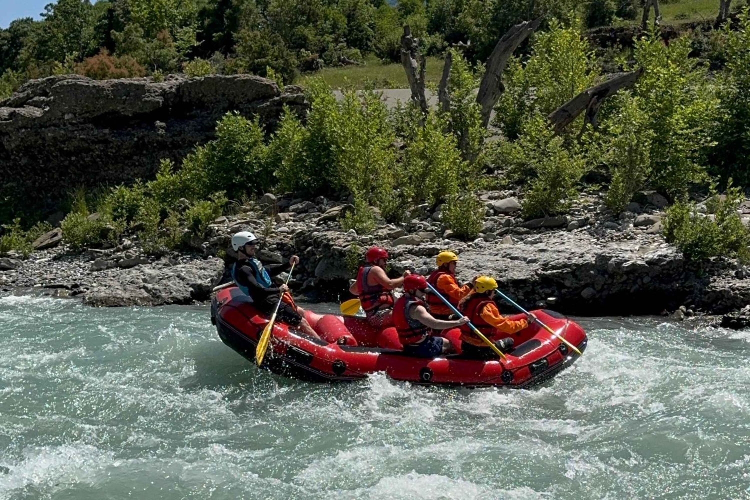 Vanuit het centrum in Përmet word je naar de rivier gebracht, waar je reis begint. Het avontuur begint met rustige stroomversnellingen, ideaal om op te warmen en vertrouwd te raken met de raft. Terwijl je stroomafwaarts peddelt, word je omringd door weelderig groen, steile canyons en uitzicht op de adembenemende bergen die dit deel van Zuid-Albanië kenmerken. Onderweg vertelt je gids je allerlei interessante dingen over het unieke ecosysteem van de Vjosa, de beschermde status van de rivier en het culturele erfgoed van de regio Përmet. Halverwege de tocht stop je bij een rustig stukje rivieroever waar je even kunt pauzeren, zwemmen in het heldere water en genieten van een lichte snack die door het team wordt verzorgd. Dit rustige moment is perfect om de ruige natuurlijke schoonheid in je op te nemen en onvergetelijke foto's te maken als herinnering aan deze dag. Terug op het water biedt de tweede helft van de tocht nog meer spannende en dynamische stroomversnellingen. Naarmate de rivier sneller gaat stromen, werk je samen met je team om de bochten en wendingen te nemen — een adrenalinekick midden in de ongerepte natuur. Met elke peddelslag ontdek je nieuwe landschappen, van verborgen watervallen tot dramatische rotsformaties.