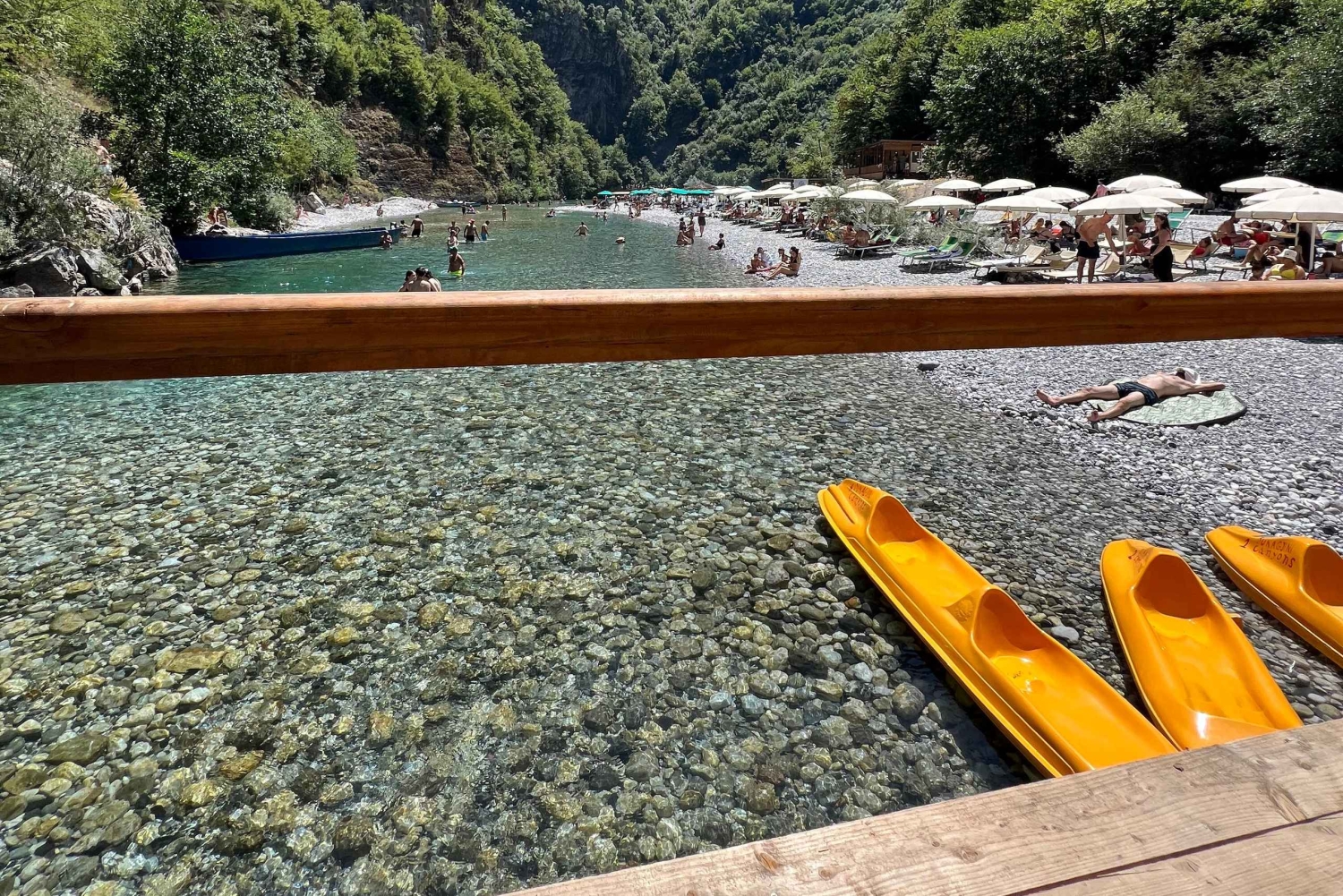 Nyt en deilig lunsj på en restaurant ved elvebredden, og nyt tradisjonelle retter mens du er omgitt av naturen. Etter lunsj har du mer tid til å svømme, sole deg på treplattformer eller prøve valgfrie aktiviteter som kajakkpadling eller paddleboarding.