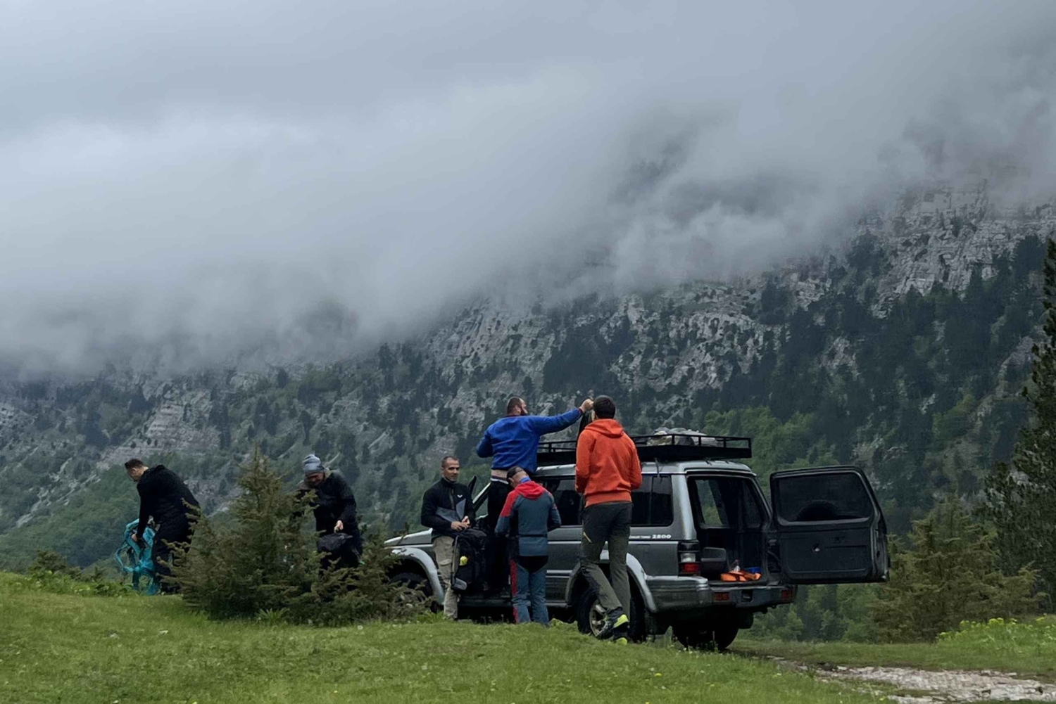 Vi begynner reisen med jeep, og kjører gjennom ville landskap, tradisjonelle fjellandsbyer og naturskjønne daler. Jeep-turen gjør det mulig å forkorte de lange tilgangsveiene som vanligvis tar timer til fots, så i stedet for å bruke tid på slitsomme skogsstier, sparer du energi til de mest spektakulære delene av fjellene. På denne måten kan selv de med mindre fotturerfaring nå høye topper og nyte utsikter som vanligvis er forbeholdt erfarne klatrere.
