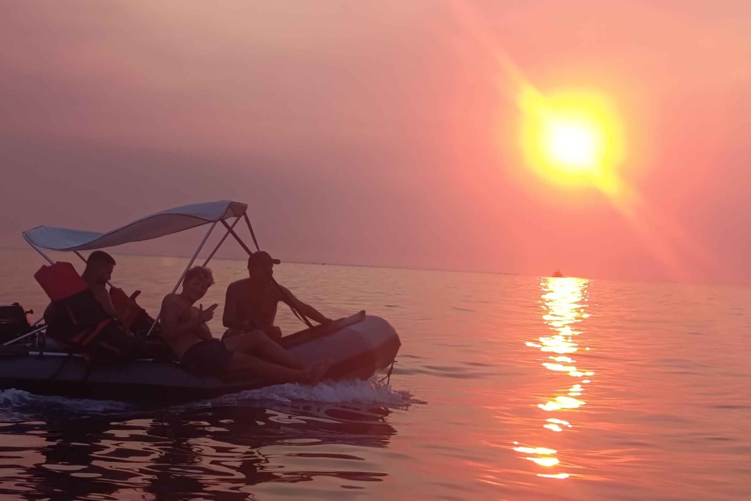 Velg fra en flåte på seks moderne båter, hver designet for komfort, sikkerhet og brukervennlighet. Hver båt er 3,8 meter lang, utstyrt med solskjerm, svømmeleder og grunnleggende snorklingutstyr, slik at du enkelt kan dykke ned i det turkise vannet når du ønsker. Båtene drives av pålitelige påhengsmotorer på 5 hestekrefter, noe som gjør dem veldig enkle å håndtere, selv for helt nye begynnere. Du trenger ingen tidligere erfaring eller båtførerkort – bare eventyrlyst og kjærlighet til havet.