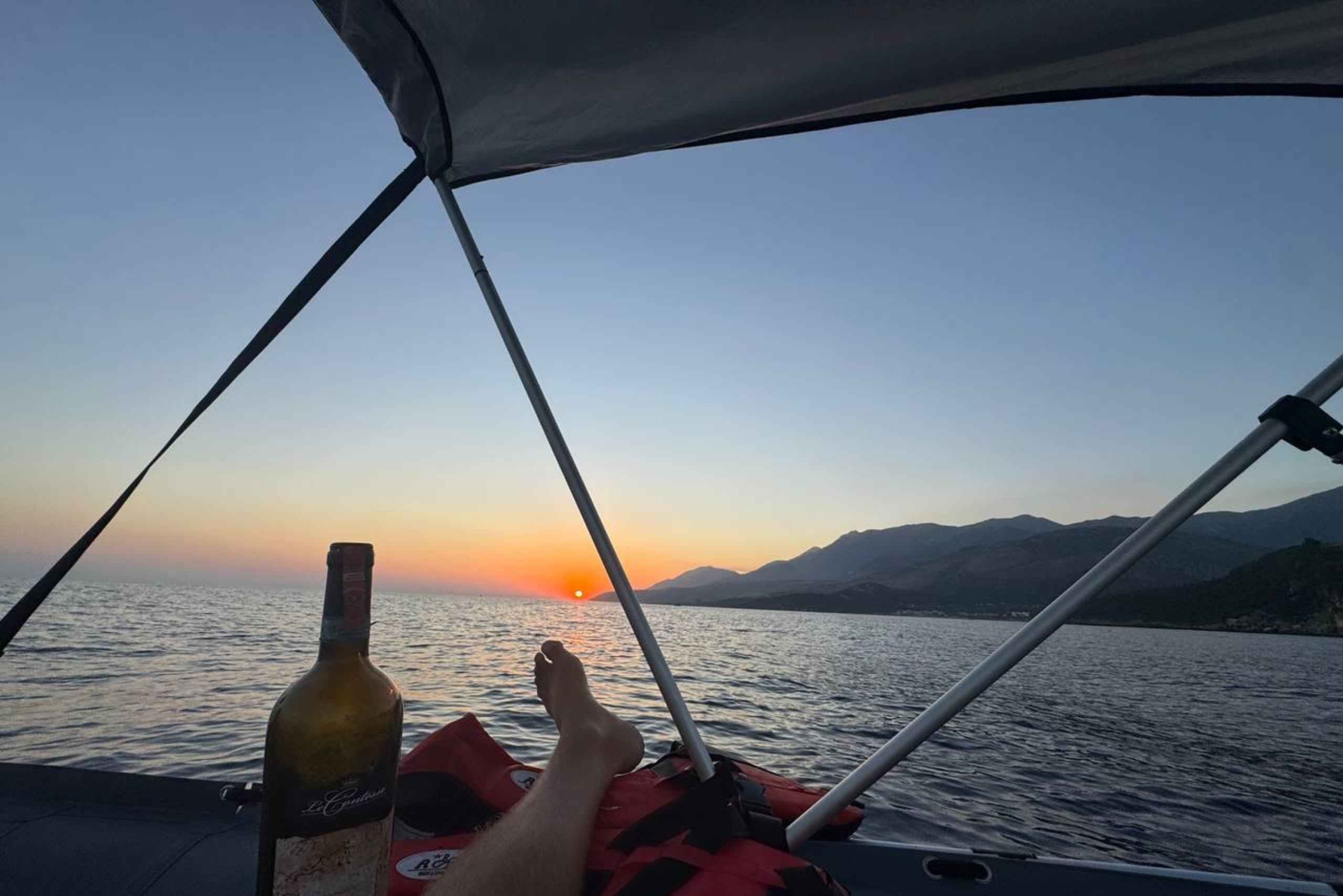 I løpet av dagen til sjøs har du muligheten til å stoppe hvor du vil – enten det er en rolig strand som kun er tilgjengelig via vannet, en skjult bukt for snorkling eller en naturskjønn klippe for soling og steinhopping. Kystlinjen rundt Himarë er full av overraskelser, og med din egen båt opplever du friheten til å se alt på din egen måte.