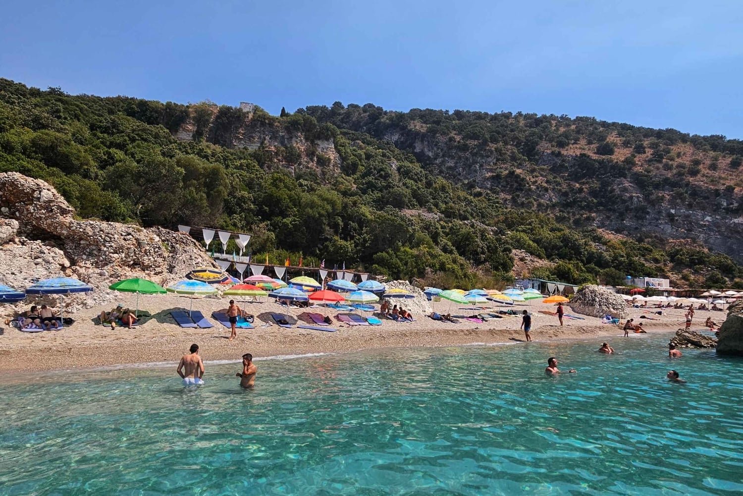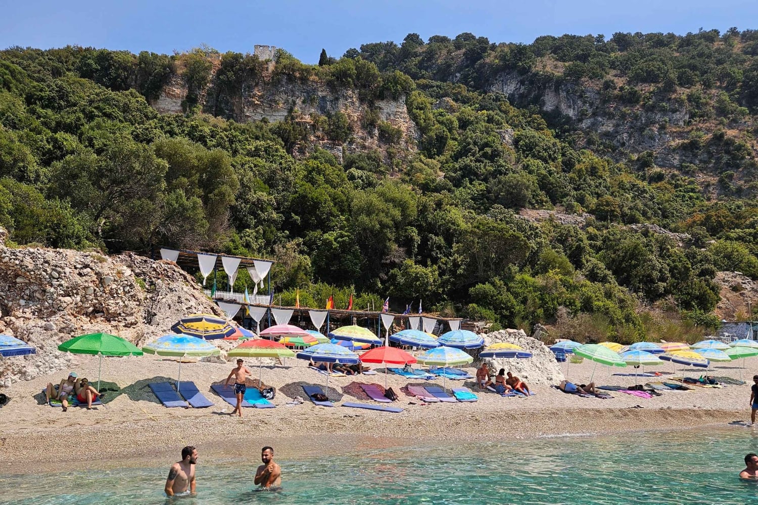 Når cruiset setter kursen tilbake mot Sarandë, stopper du ved Rrojdhe-bukten og Plazhi i Ushtarit, hvor du tilbringer 20 minutter på hvert sted. Disse rolige, uberørte strendene er ideelle for en siste svømmetur eller en fredelig stund ved sjøen.