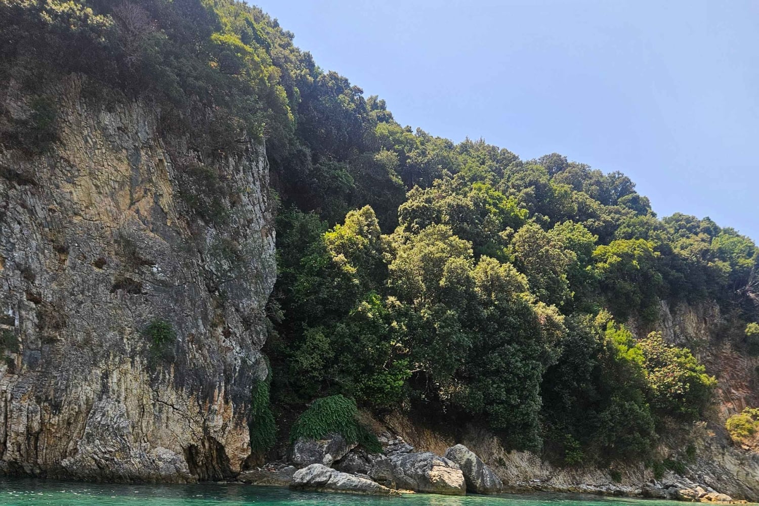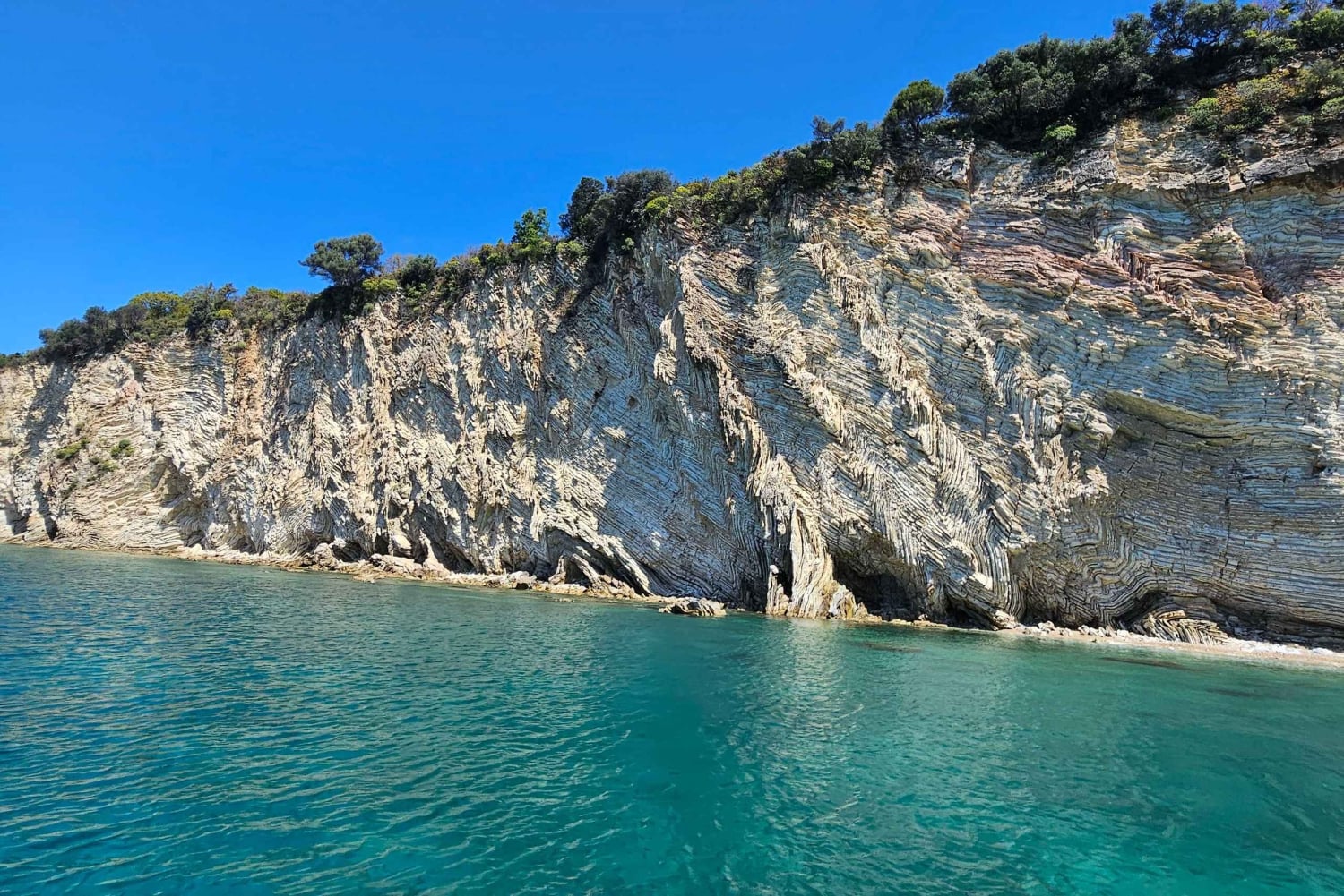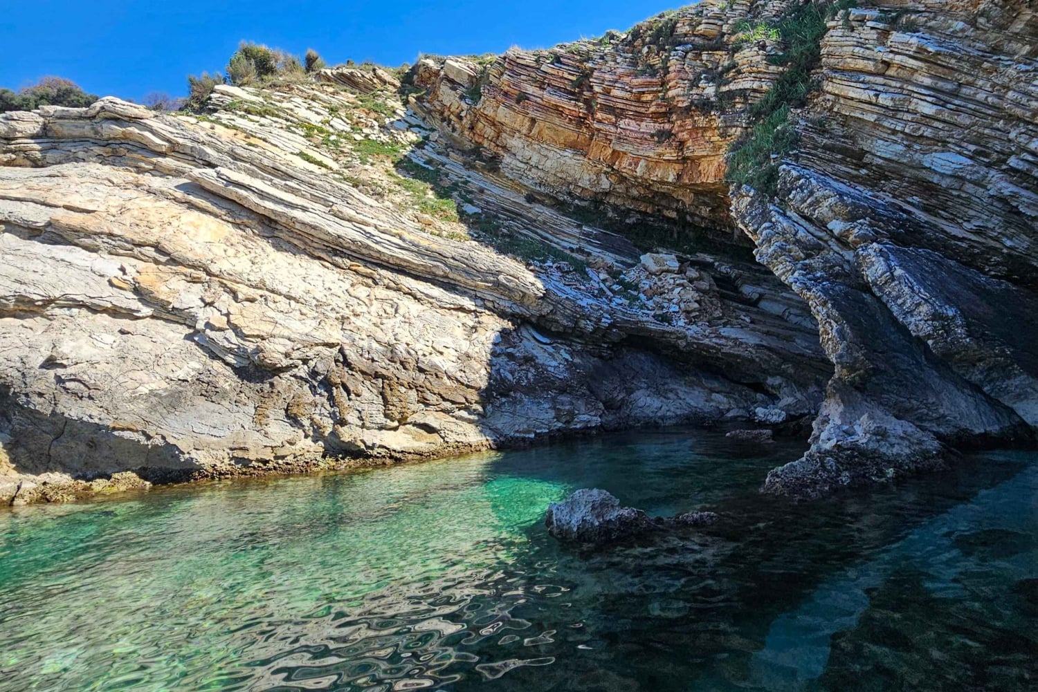 Det første stoppet er Kepi i Qefalit, en imponerende fjellformasjon formet av havets rytme. Tilbring 30 minutter her for å svømme i klart vann eller danse på dekket mens du nyter den fantastiske utsikten.