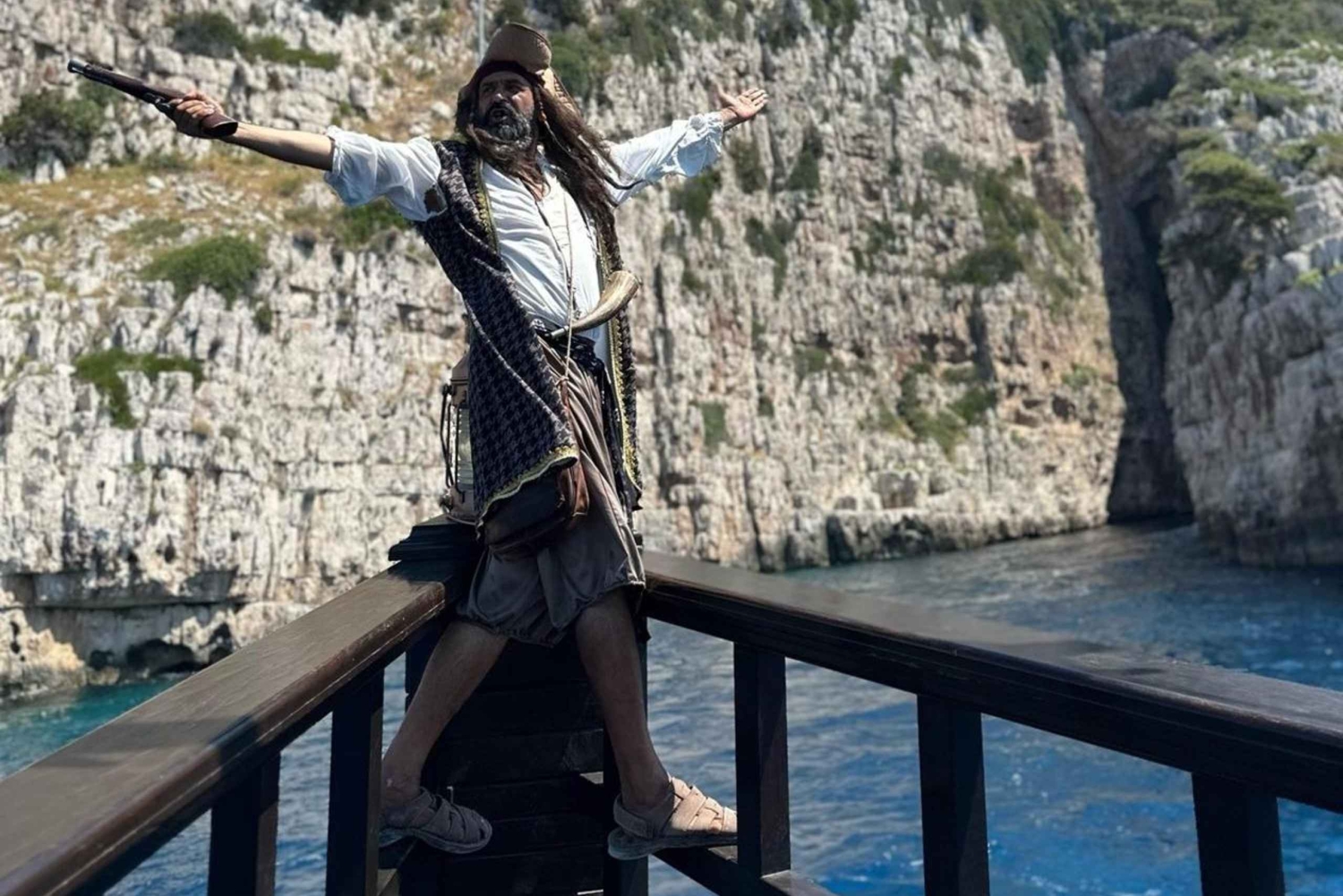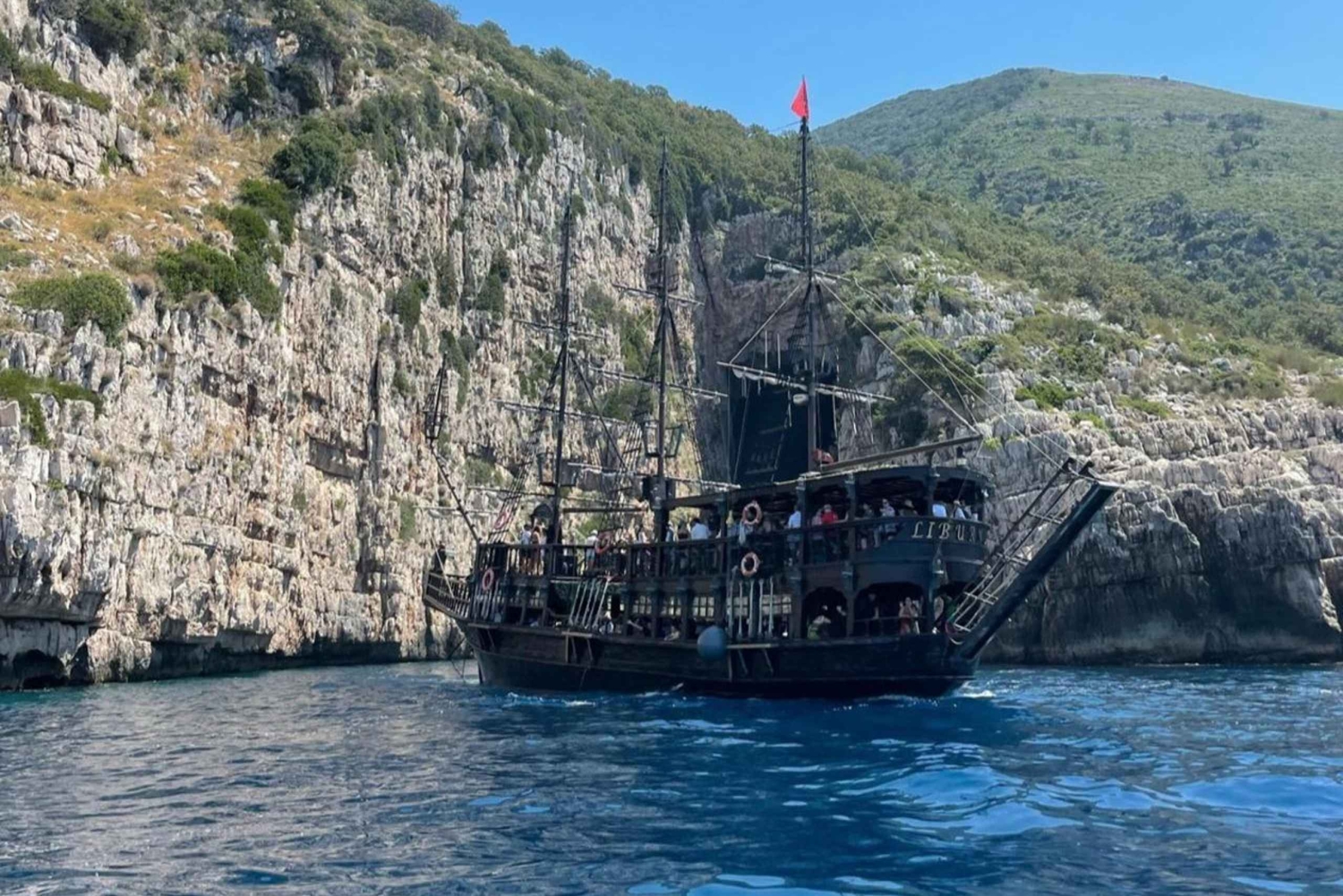 Ta en unik piratskipstur fra Vlora, utforsk den historiske Sazan-øya med bunkere fra den kalde krigen, Haxhi Ali-grotten for naturskjønn utsikt, og slapp av på Karaburun-halvøya med bading og snorkling.