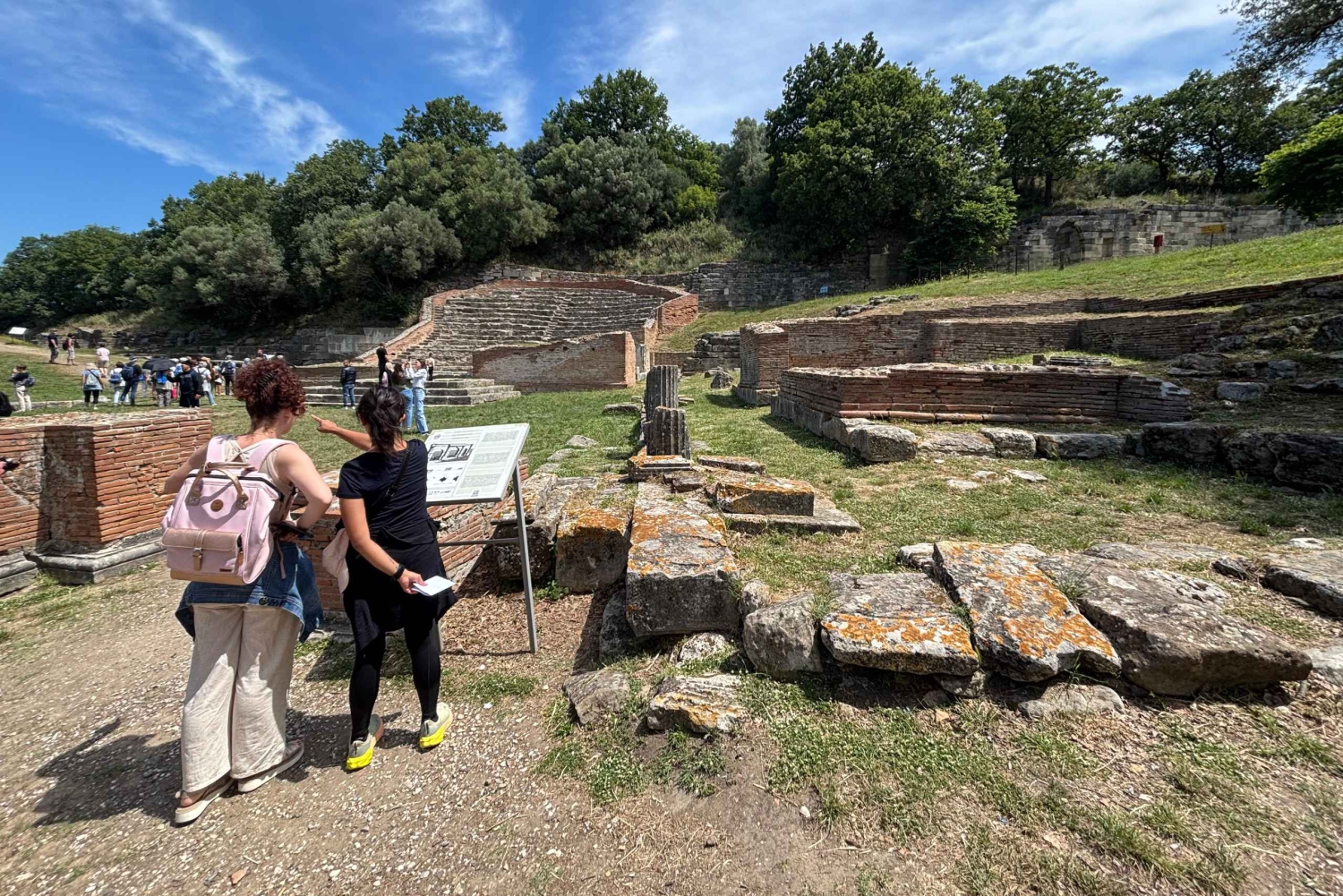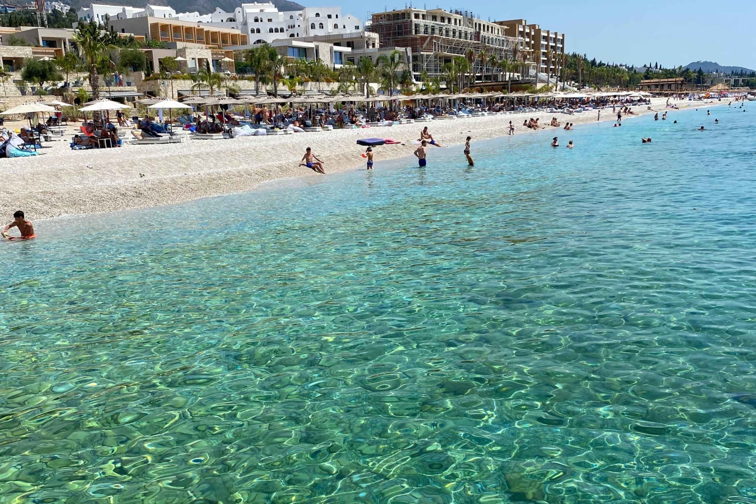 Zakończ swoją podróż na albańskim wybrzeżu: wybierz się na wycieczkę łodzią z Vlore do zatoki Grama, zatrzymując się w ukrytych zatoczkach i jaskiniach morskich, takich jak zatoka Davina, zatoka Anglików i Błękitna Jaskinia. Odwiedź starożytne ruiny Butrintu, źródło Błękitnego Oka i białe plaże Ksamil, a na koniec zatrzymaj się w Parku Archeologicznym Apollonia.