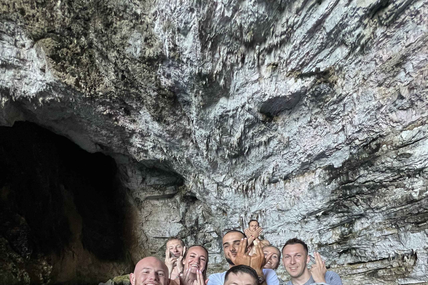 • Następny przystanek: jaskinia Haxhi Ali – odkryj jeden z najbardziej charakterystycznych cudów natury Riwiery, słynący z lśniących błękitnych wód i imponujących formacji skalnych.
