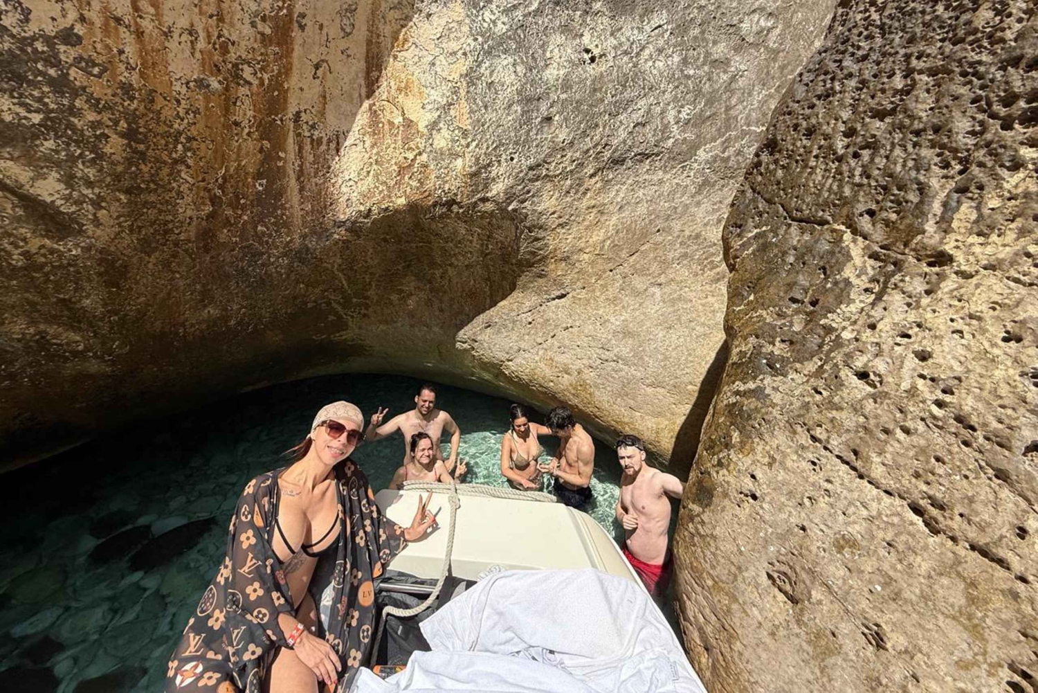 Po przybyciu do Wlory spotkasz się z załogą łodzi i przewodnikiem w biurze, a następnie wspólnie udacie się na molo (oddalone o zaledwie 5 minut). Następnie wsiądziesz na pokład szybkiej łodzi motorowej, która może pomieścić od 6 do 36 osób, i wyruszysz w ekscytującą 4–5-godzinną podróż po krystalicznie czystych wodach Morza Jońskiego.