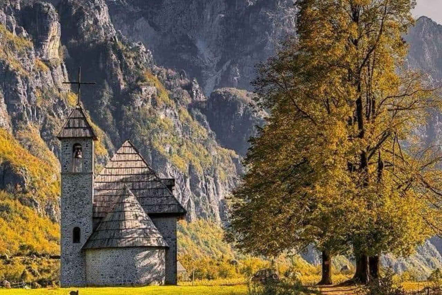 ✅ Tirana lub lotnisko do Theth (4,5 godz., obejmuje odcinek terenowy) – malownicza przygoda w albańskich Alpach, przez surowe krajobrazy, aż do odległej górskiej wioski.
