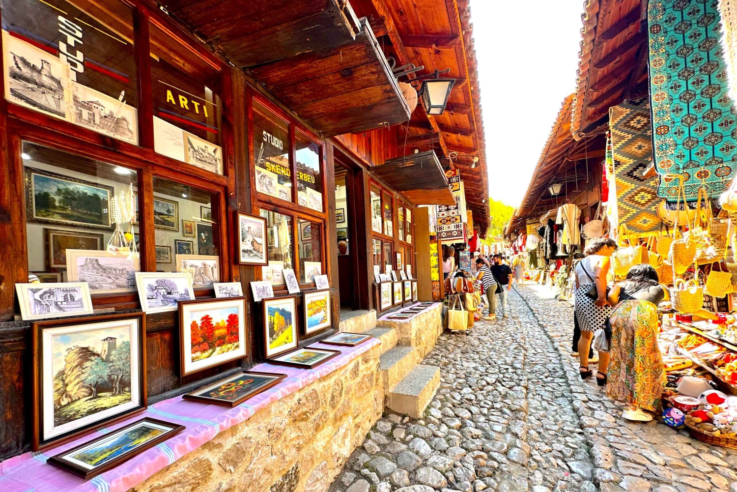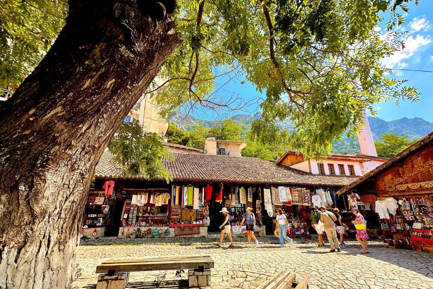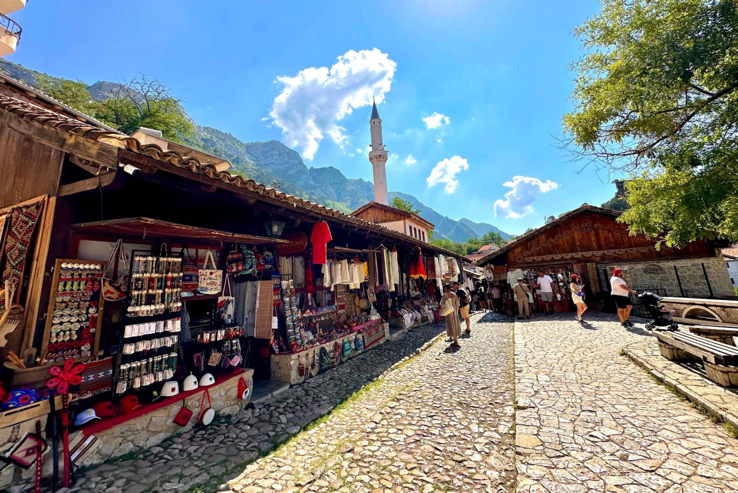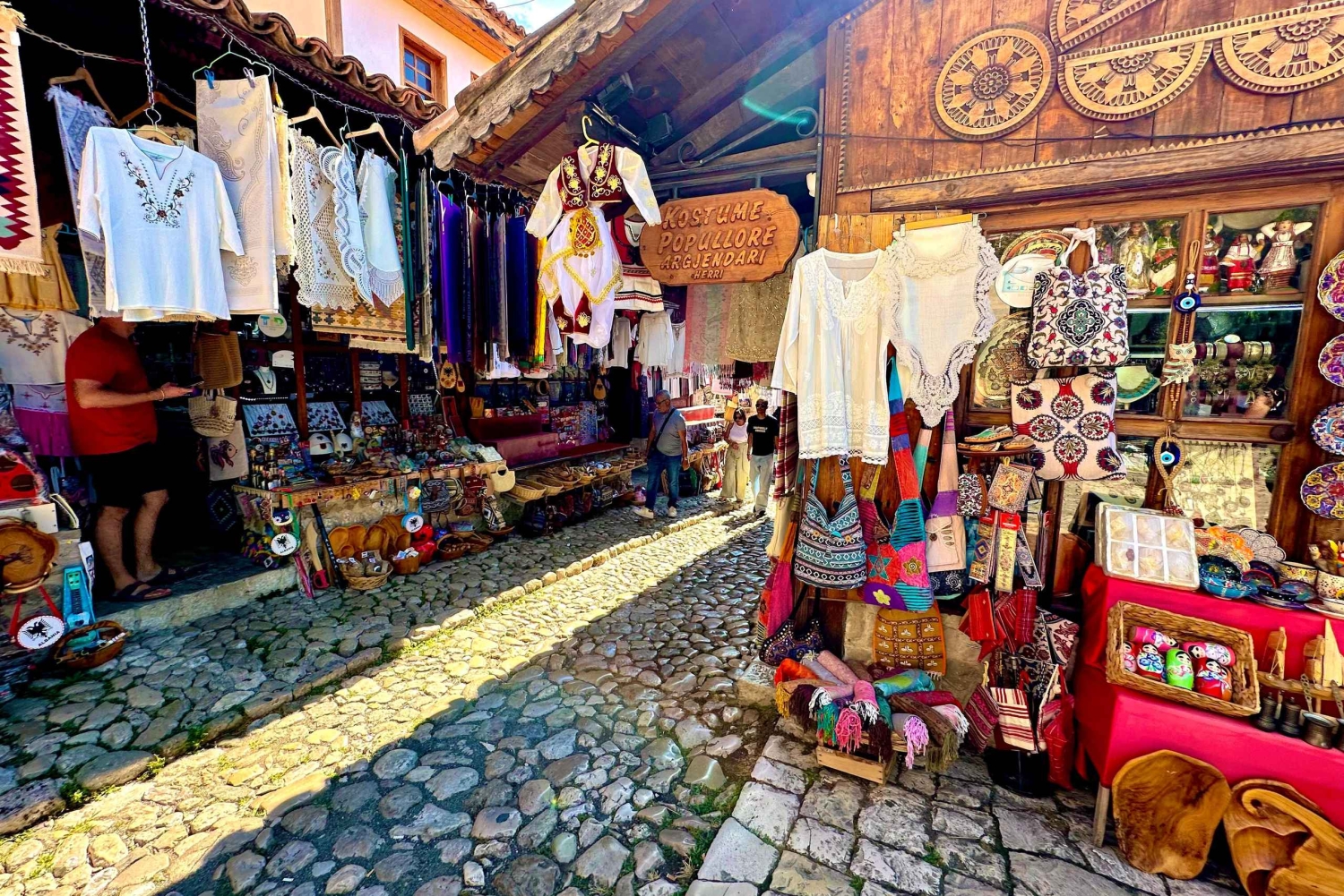 Wyrusz z Tirany do Kruji i zanurz się w historii na tętniącym życiem bazarze, gdzie rzemieślnicy tworzą dywany, biżuterię i tradycyjne pamiątki. Weź udział w warsztatach GUNI Qeleshe, aby odkryć odwieczne techniki i rodzinne sekrety. Zwiedź zamek w Kruji, aby dowiedzieć się więcej o Skanderbegu i dziedzictwie regionu, a następnie skorzystaj z wolnego czasu, aby odwiedzić Narodowe Muzeum Skanderbega i Muzeum Etnograficzne, przejść się po bazarze i skosztować autentycznych dań albańskiej kuchni slow food, takich jak tavë kosi, byrek i fërgesë w lokalnej restauracji.