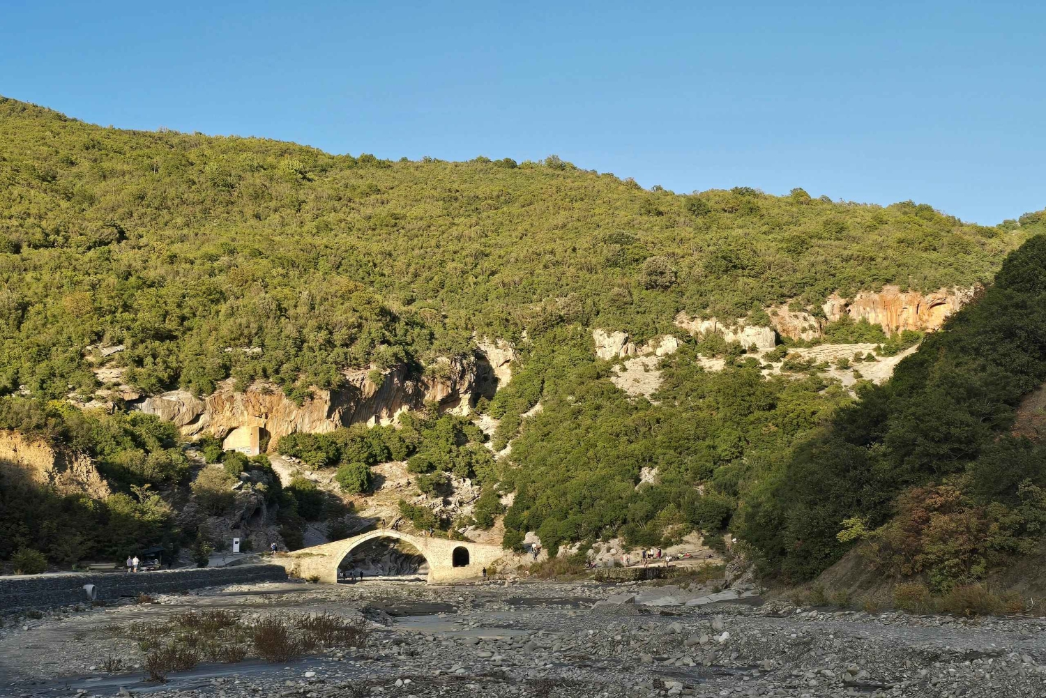 Partimos de Saranda em direção a Përmet, com uma paragem para fotos na Ponte Dragoti, sob a qual corre o rio Drin, na zona onde ocorreu a Guerra Ítalo-Grega. Continuamos ao longo da estrada panorâmica com outra paragem em Këlcyrë, abaixo do Monte Trebeshina, onde a frescura da cascata oferece vistas mágicas. Fazemos uma breve paragem e depois continuamos para os Banhos Termais de Bënja, um lugar com águas curativas situado entre as montanhas, com a Ponte Katiut ao fundo. Tempo livre de 90 minutos para desfrutar das águas quentes sulfúricas curativas.