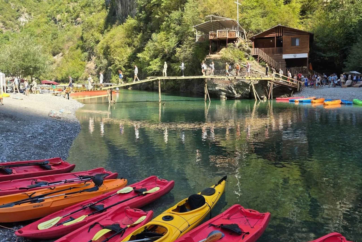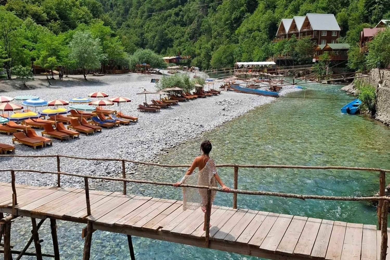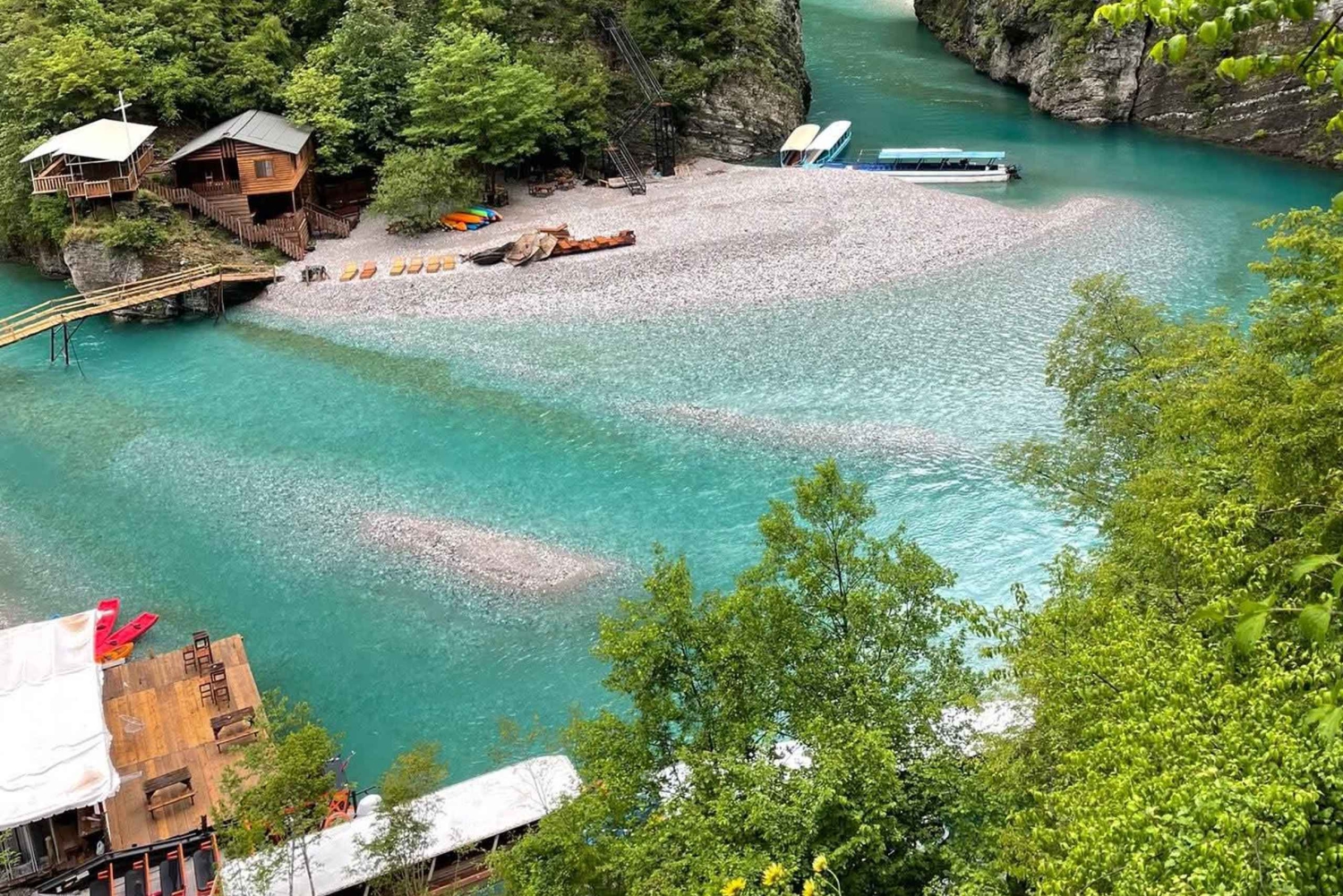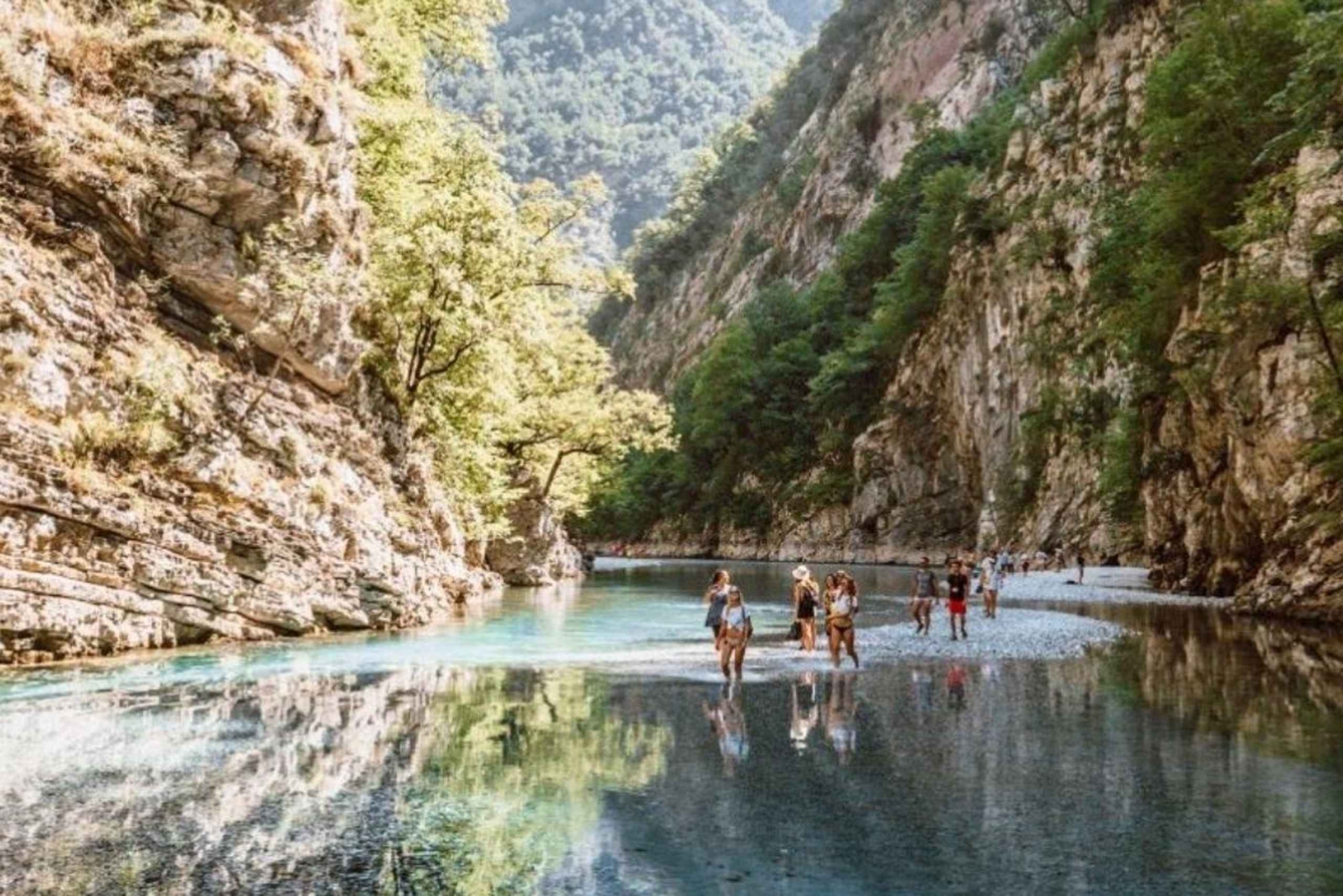 Passa o teu tempo livre a nadar, a apanhar sol, a andar de canoa ou a explorar trilhos panorâmicos ao longo do rio. Também podes saltar de pequenos penhascos ou relaxar debaixo das árvores. Os restaurantes locais oferecem pratos tradicionais albaneses, perfeitos para desfrutar do almoço num ambiente sereno.