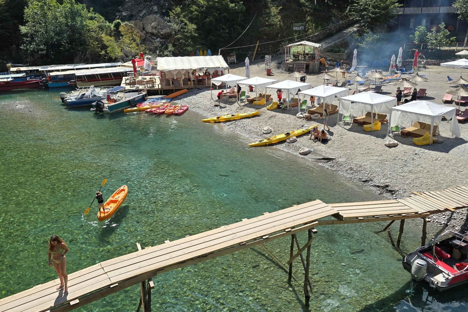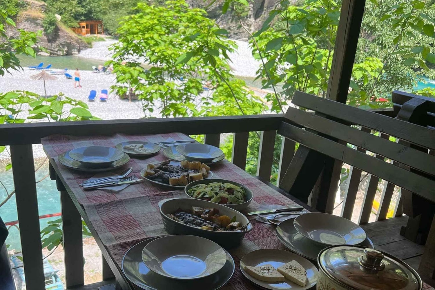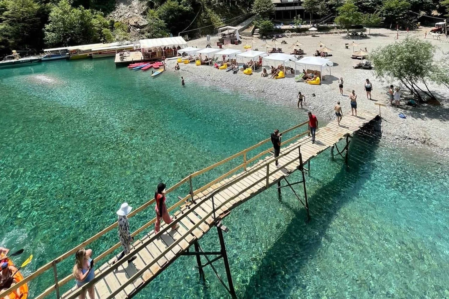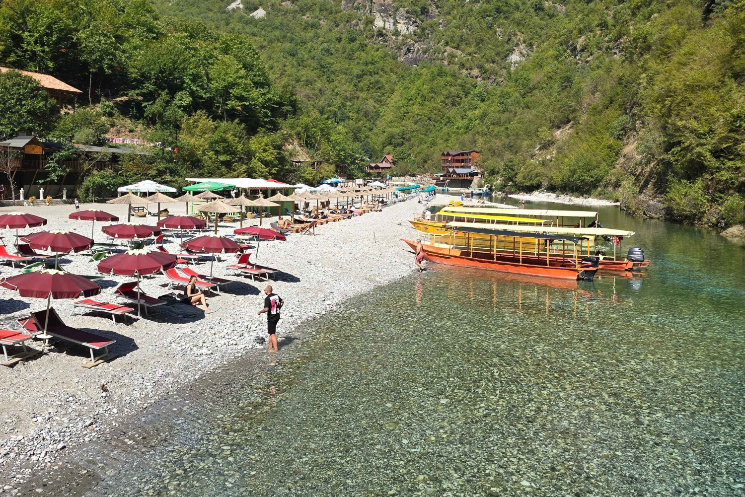 Passa o teu tempo livre a nadar, a apanhar sol, a andar de canoa ou a explorar trilhos panorâmicos ao longo do rio. Também podes saltar de pequenos penhascos ou relaxar debaixo das árvores. Os restaurantes locais oferecem pratos tradicionais albaneses, perfeitos para desfrutar do almoço num ambiente sereno.