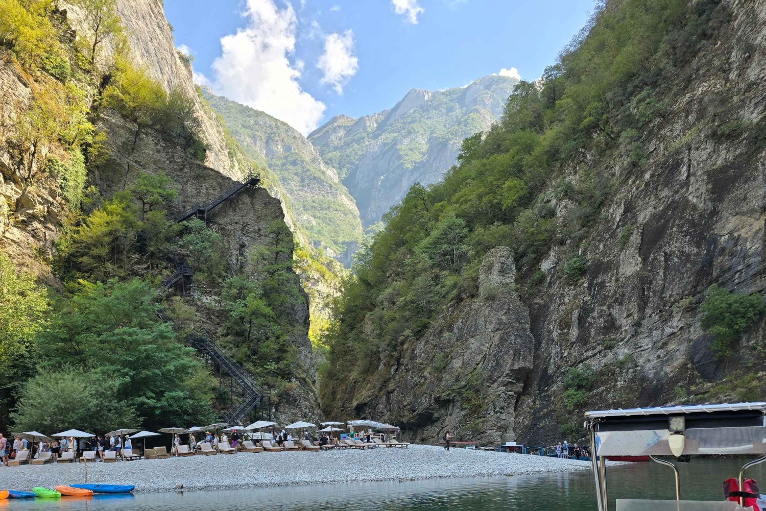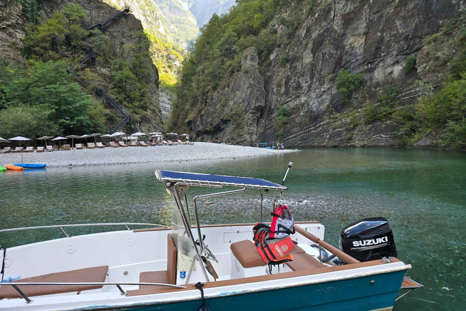 Navega por águas azul-turquesa emolduradas por falésias imponentes e montanhas verdejantes, muitas vezes comparadas aos fiordes da Noruega, mas com um charme albanês único. Ao longo do caminho, o teu guia irá mostrar-te grutas escondidas, cascatas e outras maravilhas naturais, com oportunidades para tirar fotografias ou dar um mergulho refrescante.